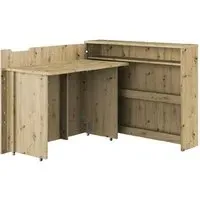 Upgrade your home office or study area with the Furniture in Fashion Carson 90cm Right Convertible Wooden Laptop Desk in Artisan Oak. Perfectly compact and modern, this desk is designed to fit seamlessly into any space while offering exceptional functionality. Whether youre working remotely, tackling homework, or enjoying creative hobbies, this desk provides a stylish and practical solution. Featuring a sleek Artisan Oak finish and a Right convertible design, the Carson desk offers versatility and durability. Its sturdy wooden construction ensures long-lasting performance, while the 90cm surface provides ample space for your laptop, documents, and accessories. Ideal for modern interiors, its a smart choice for those who value both aesthetics and efficiency. Enhance your productivity with the Furniture in Fashion Carson 90cm Right Convertible Wooden Laptop Desk in Artisan Oak. With its modern design and functional features, this desk is an excellent addition to any contemporary workspace. Please Note : Any faults or damaged parts must be reported before proceed with the assembly FEATURES : Material : 16mm high-quality laminated board Finish : Artisan Oak Three Shelves Wheels For Easy Opening & Closing Right-Side Opening Made from 22mm & 16mm high-quality laminated board Fixings for wall mounting are not included as specific ones will be required for your type of wall Easily adaptable for flexible placement in various room layouts 90cm width makes it perfect for smaller spaces like apartments and home offices Complements a wide range of interior styles with a chic and understated look Built to withstand daily use while maintaining its elegant appearance Offers ample space for your laptop, books, and other essentials Features compartments to keep your workspace neat and organized Combines practicality and style for areas with limited room Comes with clear instructions for quick and hassle-free setup Assembly Required Available at a