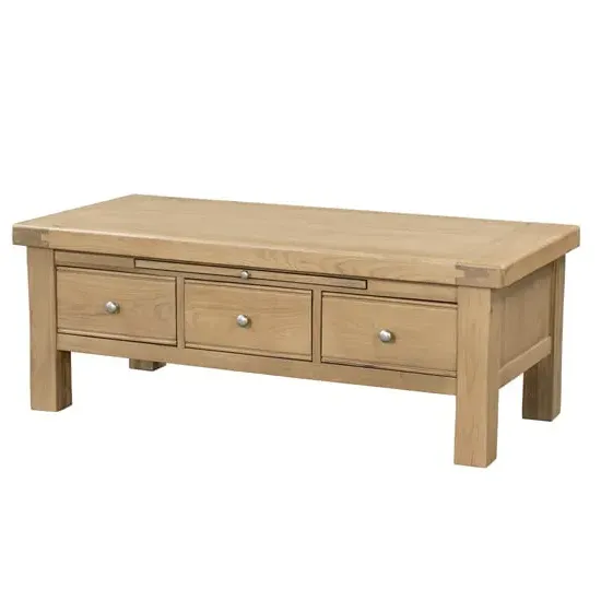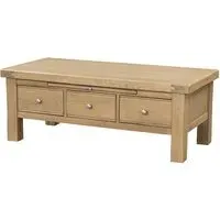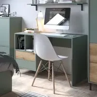 The Danville Coffee Table features a bold green and natural oak finish that creates a contemporary focal point for your living area. Its three spacious shelves provide organized storage for books, magazines, and decorative pieces while maintaining easy access. The grooved front design adds texture and visual appeal, while the durable laminated chipboard construction sits securely on high metal legs. W100 x D60 x H41.2 cm.