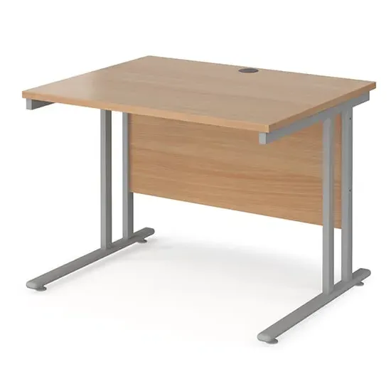 The Melor Computer Desk offers efficient workspace with its cantilever leg frame design that ensures easy movement and ample space underneath. Its 25mm melamine worktop provides durability, while the double upright cantilever frame with feet levellers adds stability. The desk features an 18mm back modesty panel and cable access port for organized workspace management. W1000 x D800 x H725 mm