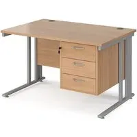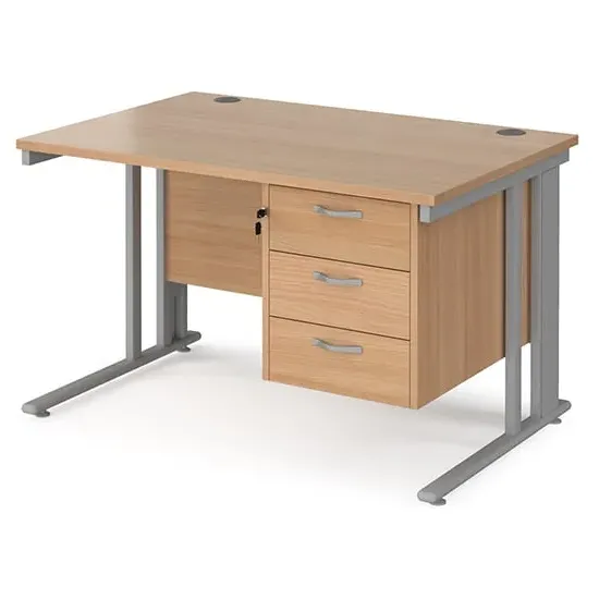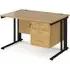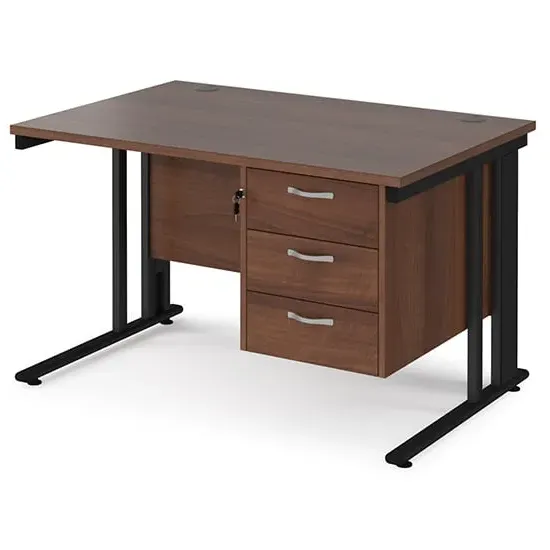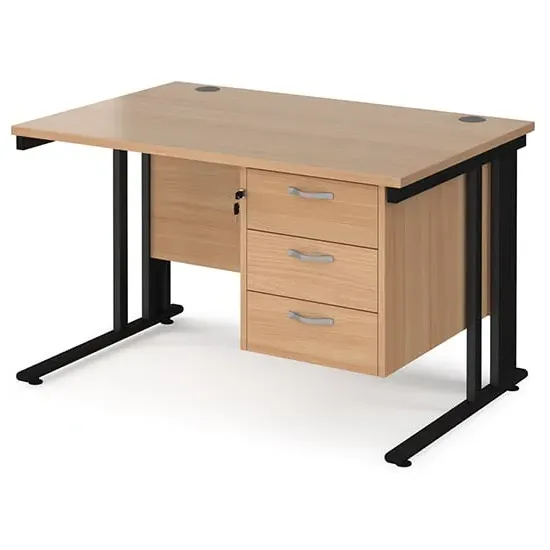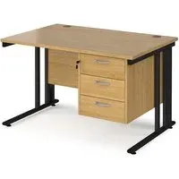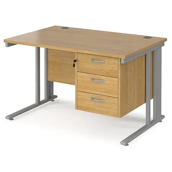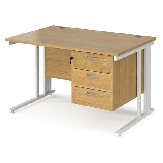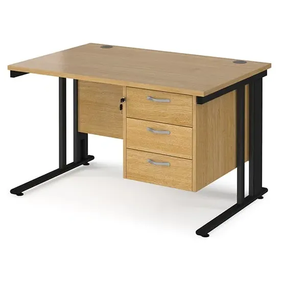 Create a functional, minimal workspace in the home with the help of this cable managed desk with plenty of options for efficient cable organisation. Our Melor cable managed desks are designed to fit a variety of home office environments, offering an effective and affordable solution to cable control and with 25mm desktops that ensure the strength and stability needed in commercial-home furniture. FEATURES : Material : MDF, Metal Finish : Oak, Black Rectangular desks 800mm deep with Black cable managed legs and one cable access port Create single hot desks or large clusters featuring durable 25mm melamine worktops 18mm back modesty panel The cantilever leg frame has a removable cover to tidy and conceal cables and prevent loose wires under the desk Choice of matching storage to complement the range Available at an affordable price Images shown are for illustration purpose only DIMENSIONS : Height : 725mm Width : 1200mm Depth : 800mm
