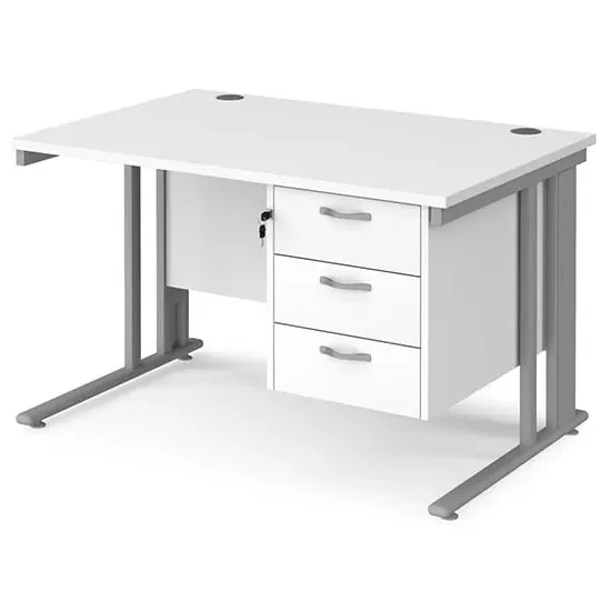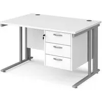 The Melor Computer Desk combines efficient cable organisation with a durable 25mm melamine worktop. Its cantilever leg frame features a removable cover to conceal cables, while the 18mm back modesty panel adds stability. The desk includes one cable access port for streamlined wire management, and the black metal legs provide sturdy support. W1200 x D800 x H725 mm