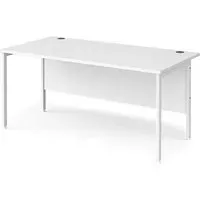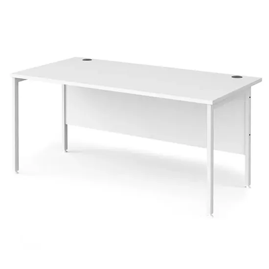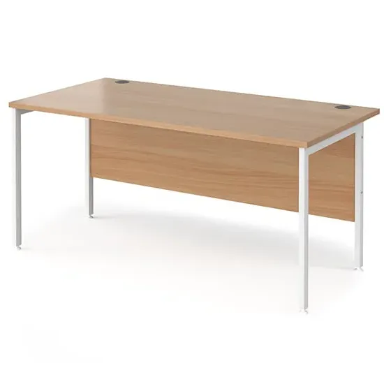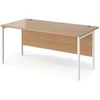 Create a home office space that works for you with a contemporary H-frame desk that would make a neat workspace addition in the bedroom, home office or living area. The Melor desks with a fully welded H-frame leg design ensures a strong and stable workstation finished in black, silver or white to complement the 25mm melamine desktops in a selection of wood finishes that resist scratches, stains and burns. FEATURES : Material : MDF, Metal Finish : Oak, Black 18mm back modesty panel Choice of matching storage to complement the range Create single hot desks or large clusters featuring durable 25mm melamine worktops Rectangular desks 800mm deep with black H-Frame and one cable access port The fully welded H-Frame leg ensures a strong and stable workstation Available at an affordable price Images shown are for illustration purpose only DIMENSIONS : Height : 725mm Width : 1600mm Depth : 800mm