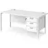 The Moline Computer Desk combines functionality with durability through its fully welded H-frame design and 25mm melamine worktop. The white finish desktop resists scratches, stains and burns, while the silver H-frame provides strong stability. Three shallow drawers with silver handles offer convenient storage, and the pedestal can be positioned on either left or right side. Two cable access ports keep workspace organised. W1600 x D800 x H725 mm