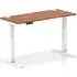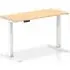 The Troy adjustable laptop desk offers ergonomic flexibility with its electronic dual motor height adjustment system, ranging from 665-1315mm. Its spacious 140cm wooden surface provides ample workspace, while the sturdy silver metal legs support up to 120kg. The desk features four programmable memory settings and an integrated USB-A port for convenient device charging. The anti-trap safety mechanism ensures secure operation, and the lockable handset prevents accidental adjustments.