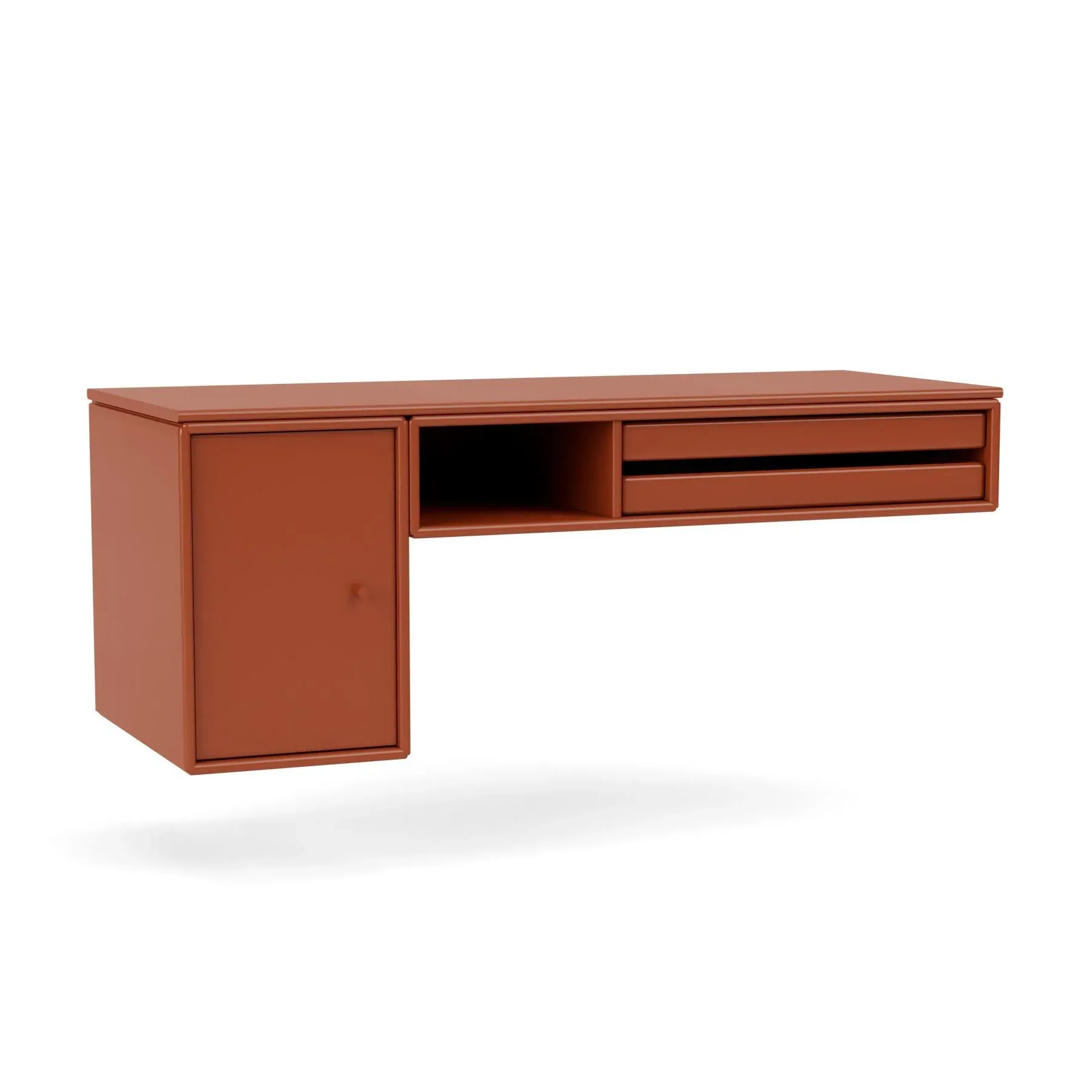 Step into the world of functional elegance with the Montana Bureau Work Desk, a compact marvel seamlessly fitting into home offices, living rooms, or bedrooms. Boasting two large, removable trays, this small work desk provides a clear overview of your essentials, ensuring an organised and efficient workspace. Below the worktop, a convenient shelf and cupboard further enhance storage options, making it an ideal choice for smaller study spaces or home offices. Designed exclusively as a wall-mounted module, the Bureau Work Desk combines practicality with style, offering a sleek solution for your workspace needs. Choose from Montana''s extensive range of lacquer colours to personalise your environment and create a space that reflects your unique taste and functionality requirements. Make the most of your limited space with the Bureau Work Desk, a versatile and stylish addition that elevates both form and function in your home. Whether you''re crafting a dedicated home office or seeking a chic desk for your bedroom, the Bureau Work Desk is designed to seamlessly integrate into various interiors. Its compact design is complemented by two large trays, providing easy access and visibility of your belongings. The addition of a shelf and cupboard beneath the worktop further enhances its organisational capabilities, offering a clutter-free and inspiring workspace. Choose this wall-mounted module to make a statement with your home decor, and select from the diverse range of Montana''s lacquer colours to tailor the Bureau Work Desk to your unique style preferences.