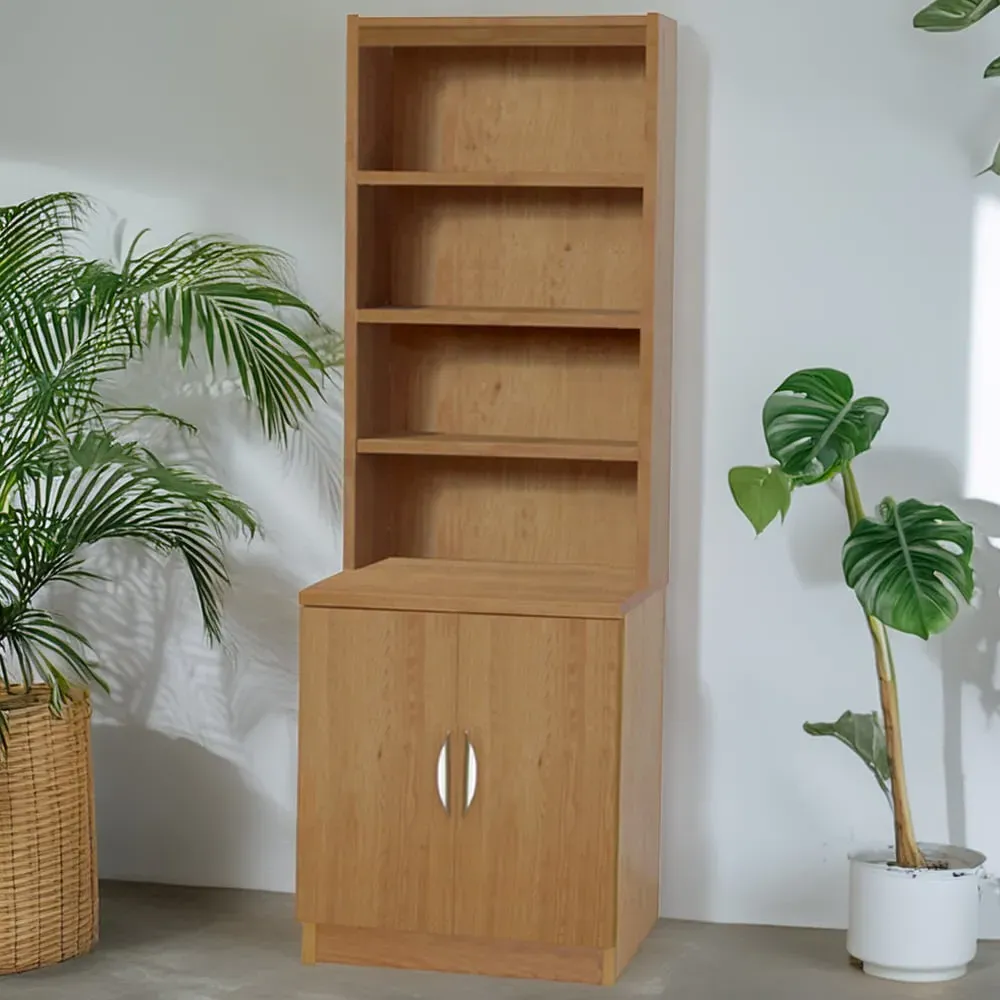 2 Door 4 Shelf Desk Height Cupboard with Hutch - Brown
