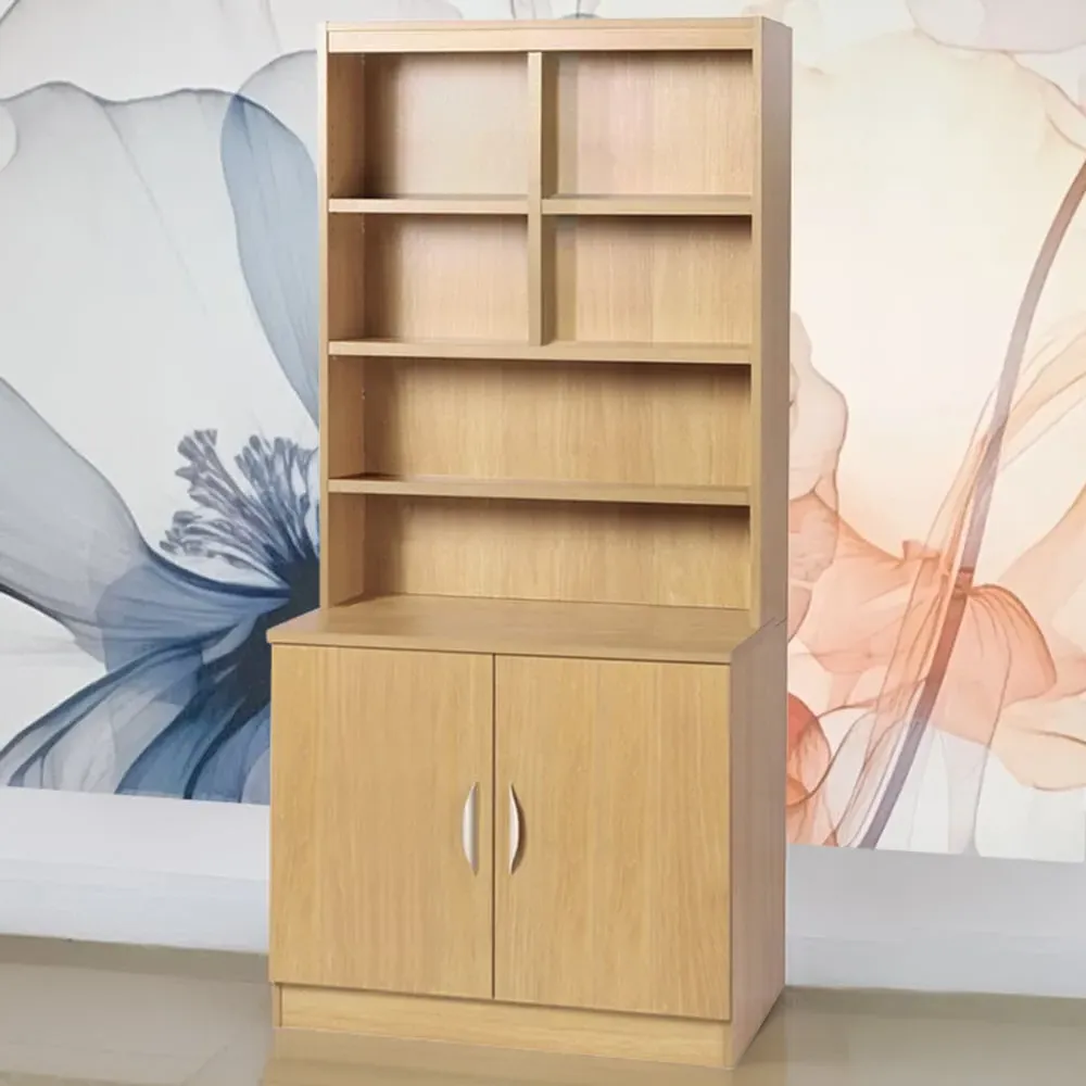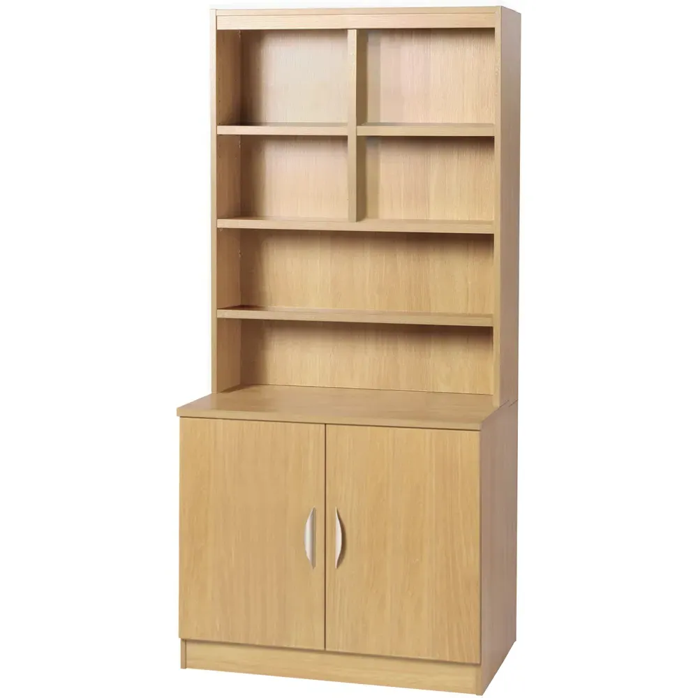 2 Door 6 Shelf Wide Cupboard with Hutch - Brown