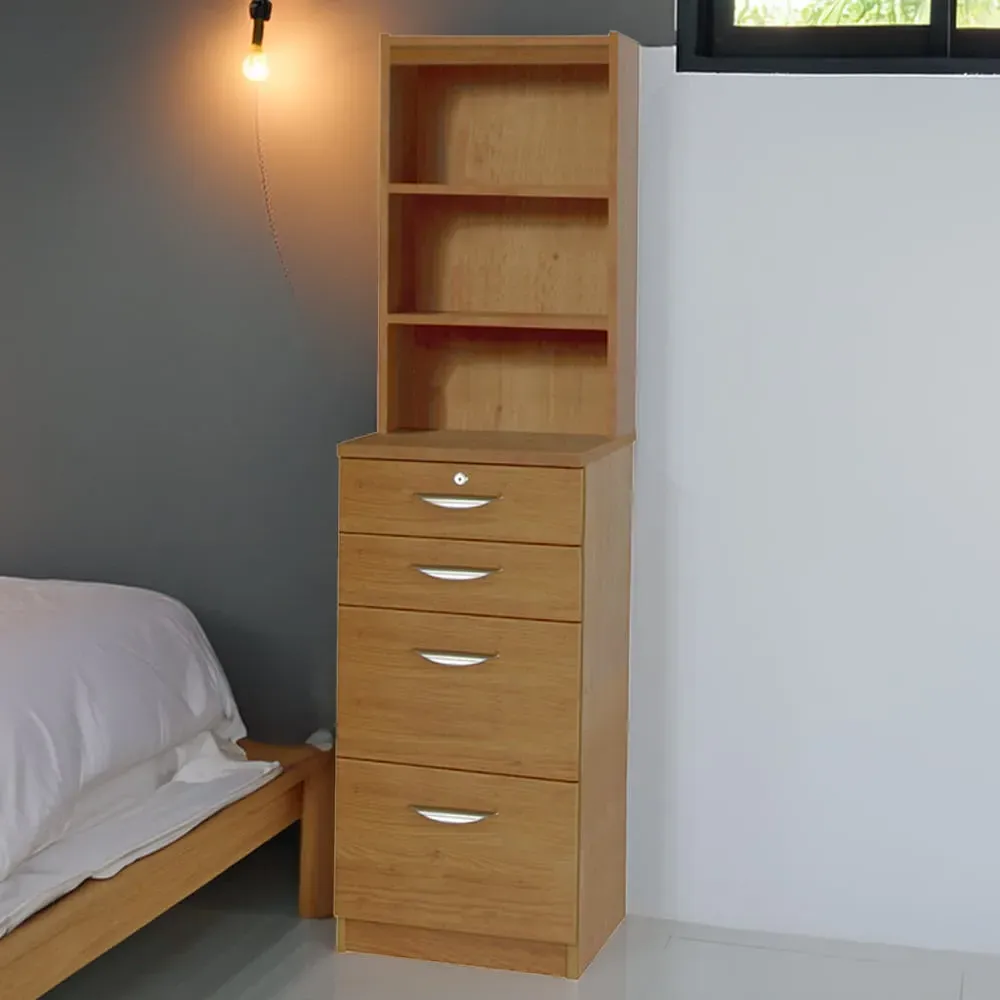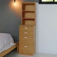 The filing cabinet offers practical document storage with its three drawers that accommodate over 210 Foolscap files, featuring smooth-action metal runners for easy access. The top drawer includes a personal lock with two keys for security, while the sturdy hutch provides both fixed and adjustable shelving with eight height settings. Constructed from furniture-quality MFC with 18mm thick panels, the unit resists heat and scratches. The 40mm rear overhang allows clearance for cables, and both pieces can be connected for enhanced functionality.