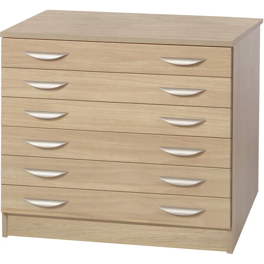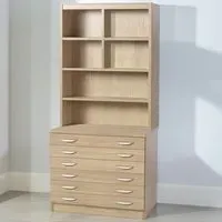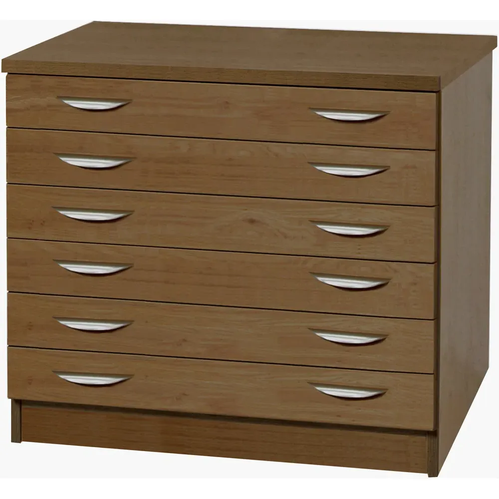 Ideal for hobbies such as sewing, painting and collecting, this unit is designed to store A2 sheets of paper such as plans, maps and artwork or storage of larger items such as paints and stationery. It features five smooth action drawers that glide on maintenance free metal runners. Made from furniture quality MFC which is resistant to hot cups and scratches. The top features a 40mm overhang to rear for clearance of plugs etc. All panels are 18mm thick, including the important back panel which ensures added strength and rigidity. Your furniture will arrive fully assembled. Please be aware that this product is of superior quality and therefore heavy. You may require assistance for room placement.