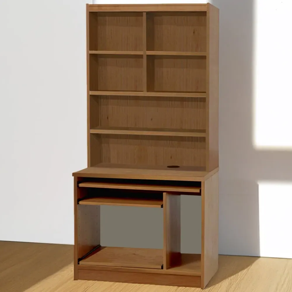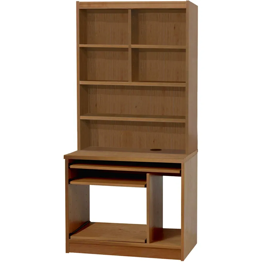6 Shelf Computer Desk with Hutch - Brown