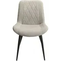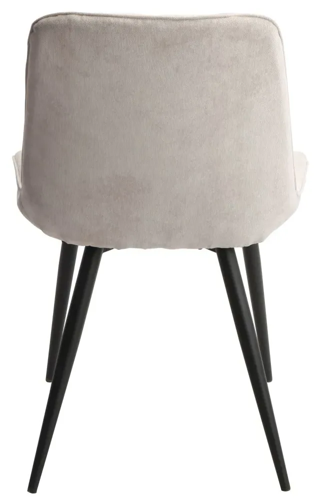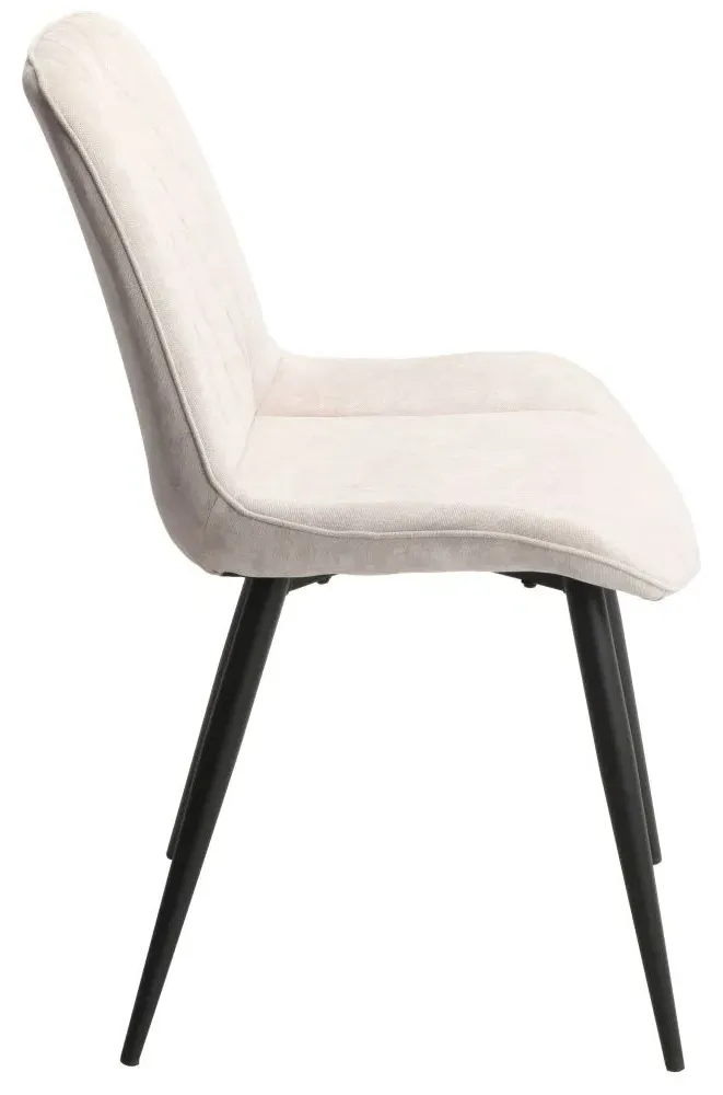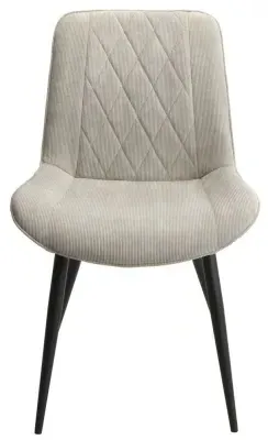 The Addison dining chair combines comfort with its straight stitch detailing, creating a refined seating option. Its light grey cord fabric upholstery provides durability and visual appeal, while the black tapered legs add stability and contrast. The structured design suits various dining spaces, and the quality construction ensures long-lasting use. Sold in pairs for convenient matching.