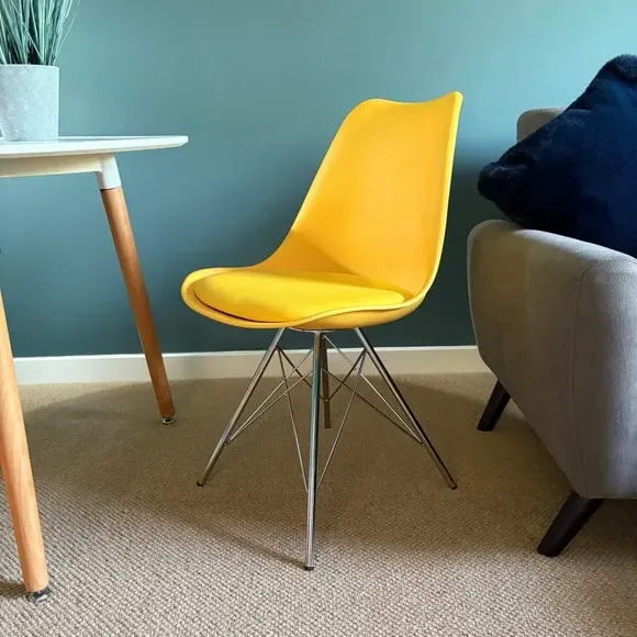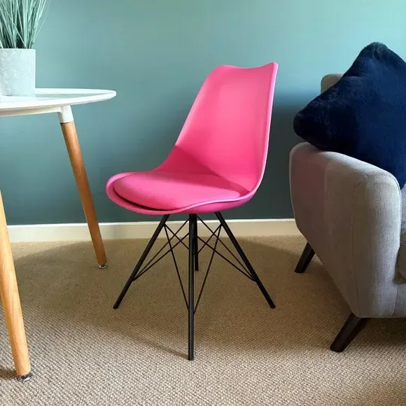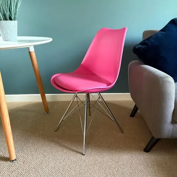 * Removable seat pad* Comfortable and durable* Easy to wipe clean with a damp cloth* Available in a variety of colours* Simple assembly with easy-to-follow instructions Part of a collection that effortlessly blends design and practicality, this chair features a transparent plastic curvaceous seat and a soft, easy-to-clean, colourful seat pad, making it both stylish and comfortable. The contoured, clear seat and four squared light wood legs not only look great but also provide exceptional sturdiness.