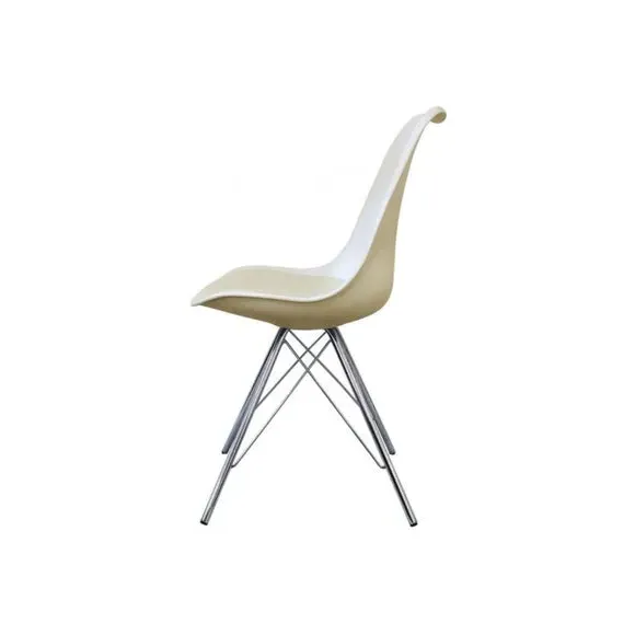 The dining chair combines transparent plastic construction with a removable seat pad for comfort and easy maintenance. Its curvaceous clear seat provides durability while the soft coloured cushion adds comfort and style. The contoured design supports natural seating posture, and the four squared light wood legs ensure exceptional stability.