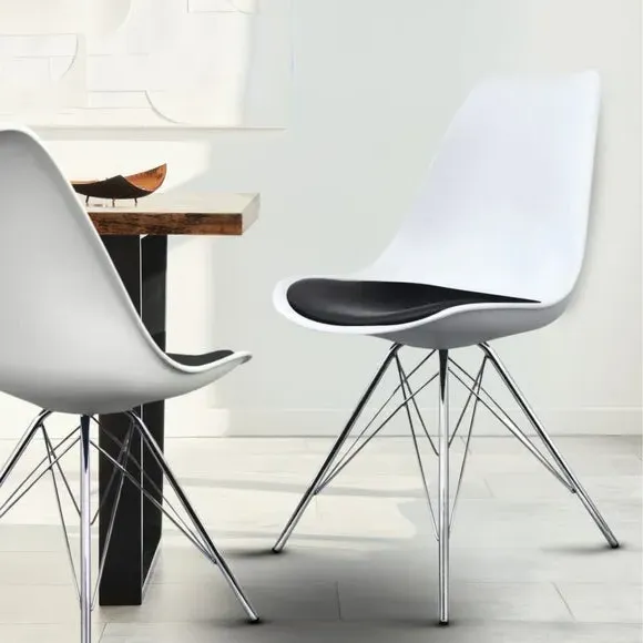 The dining chair combines transparent plastic construction with a removable seat pad for comfort and easy maintenance. Its curvaceous clear seat features a soft, wipeable pad, while the four squared light wood legs provide exceptional sturdiness. The contoured design offers comfortable seating, and the removable pad allows for effortless cleaning with a damp cloth.