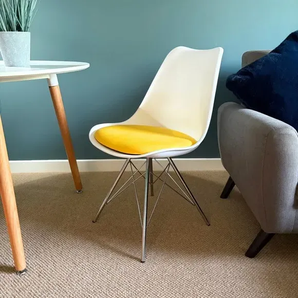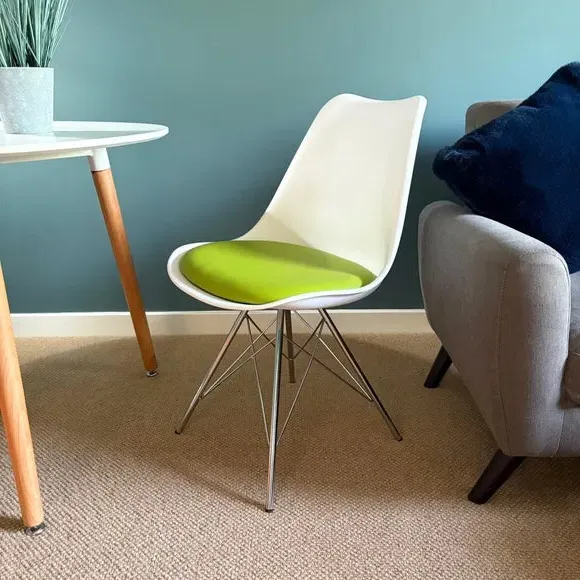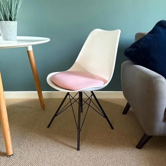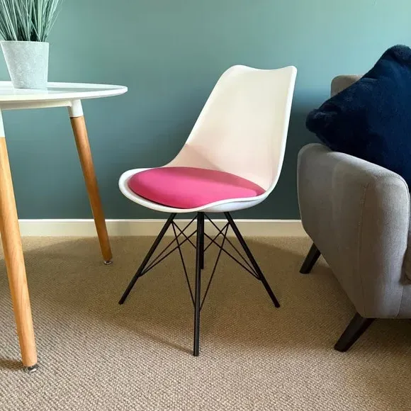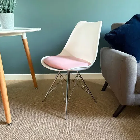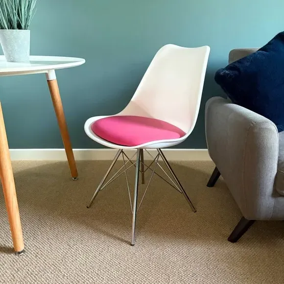 * Removable seat pad* Comfortable and durable* Easy to wipe clean with a damp cloth* Available in a variety of colours* Simple assembly with easy-to-follow instructions Part of a collection that effortlessly blends design and practicality, this chair features a transparent plastic curvaceous seat and a soft, easy-to-clean, colourful seat pad, making it both stylish and comfortable. The contoured, clear seat and four squared light wood legs not only look great but also provide exceptional sturdiness.