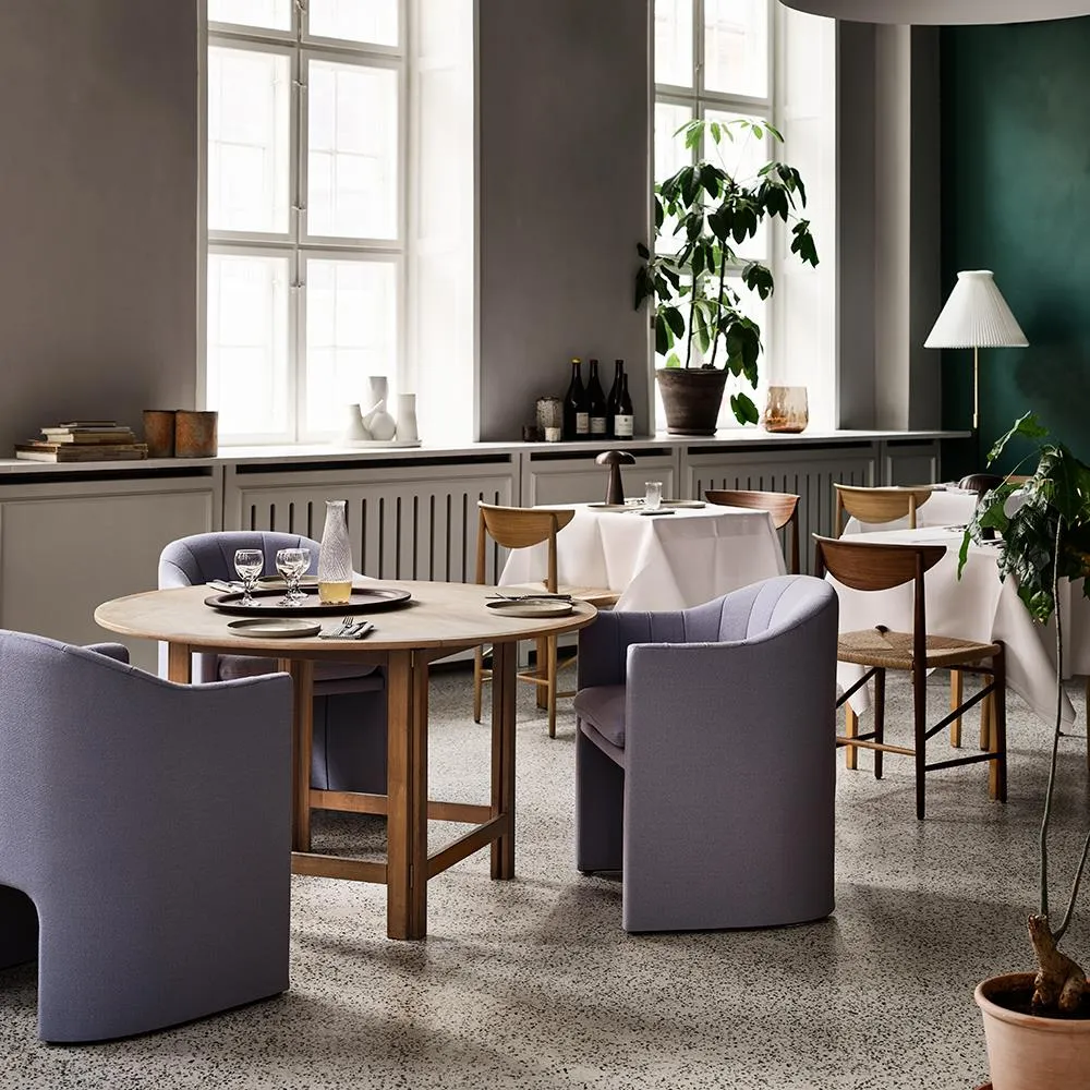 Designed by Space Copenhagen for the legendary SAS Royal Hotel, the Loafer dining chair exudes midcentury-inspired luxury. Offering the user a sense of intimacy from its upholstered curves, the chair''s interior quilting takes references from the space itself with nods to the imposing circular columns in the expansive entrance. Comfortable, protective and impeccably stylish, the Loafer dining chair is a standout piece for any residential or hospitality setting. Available in a wide range of fabrics, including exclusive Kvadrat textiles. For expert advice and for information on what fabrics are available, please email sales@hollowaysofludlow.com