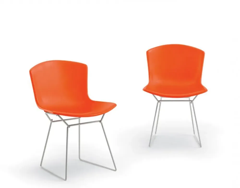 The anniversary edition of Bertoia''s 1952 Wire Chair Collection, the Bertoia side chair - plastic is comprised of a singular polypropylene seat, available in a range of bold colours. Offering a clean, sculptural structure that lends itself to an impressive range of interiors, choose between black, grey, white, orange red, yellow and blue with either a chrome or powder coated black or white steel rod base. Ideal as a dining chair or as seating in a conference room, the Bertoia side chair - plastic will lend a contemporary touch wherever it is placed.