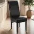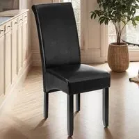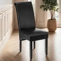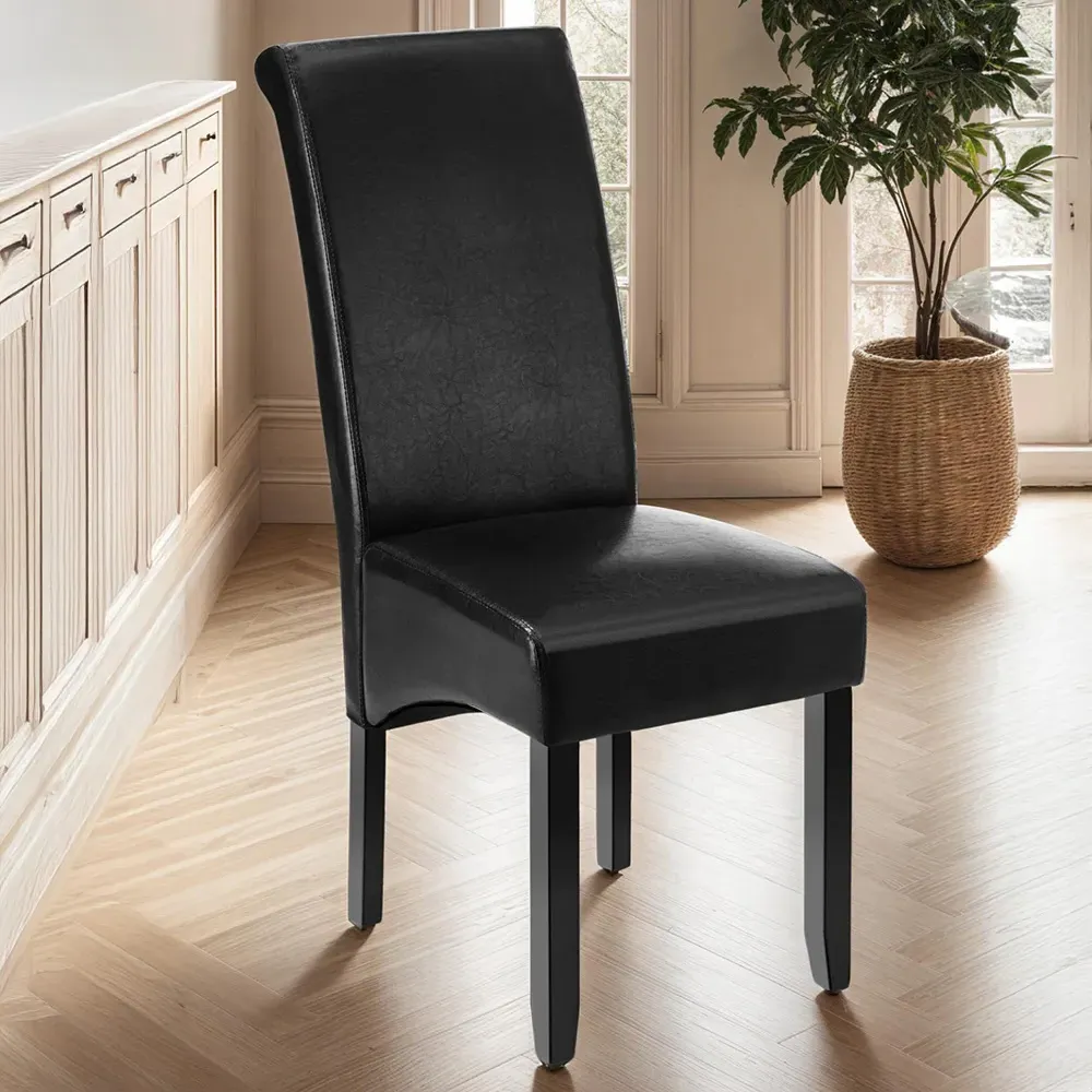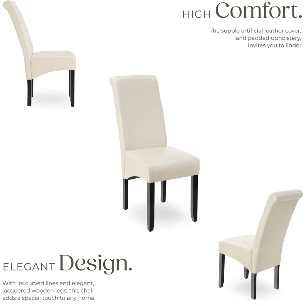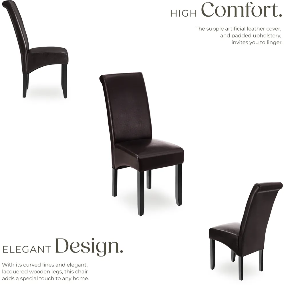 The dining chair offers ergonomic comfort with its high backrest design, upholstered in easy-to-clean synthetic leather. Its solid hardwood legs feature a high-quality gloss finish that ensures stability and strength. The ergonomic shape provides lasting comfort during extended seating, while the durable construction adds longevity to your furniture investment.