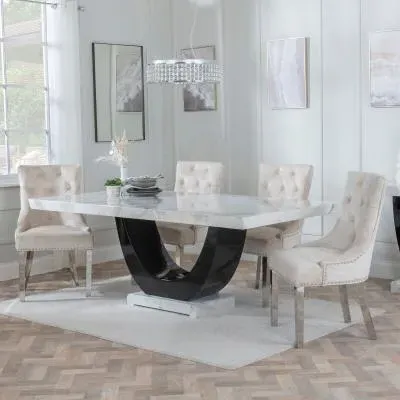 Madrid Dining Set with Knocker Back Chairs - White, Marble