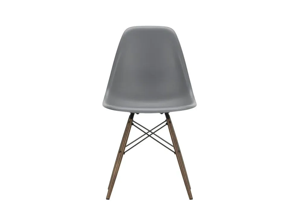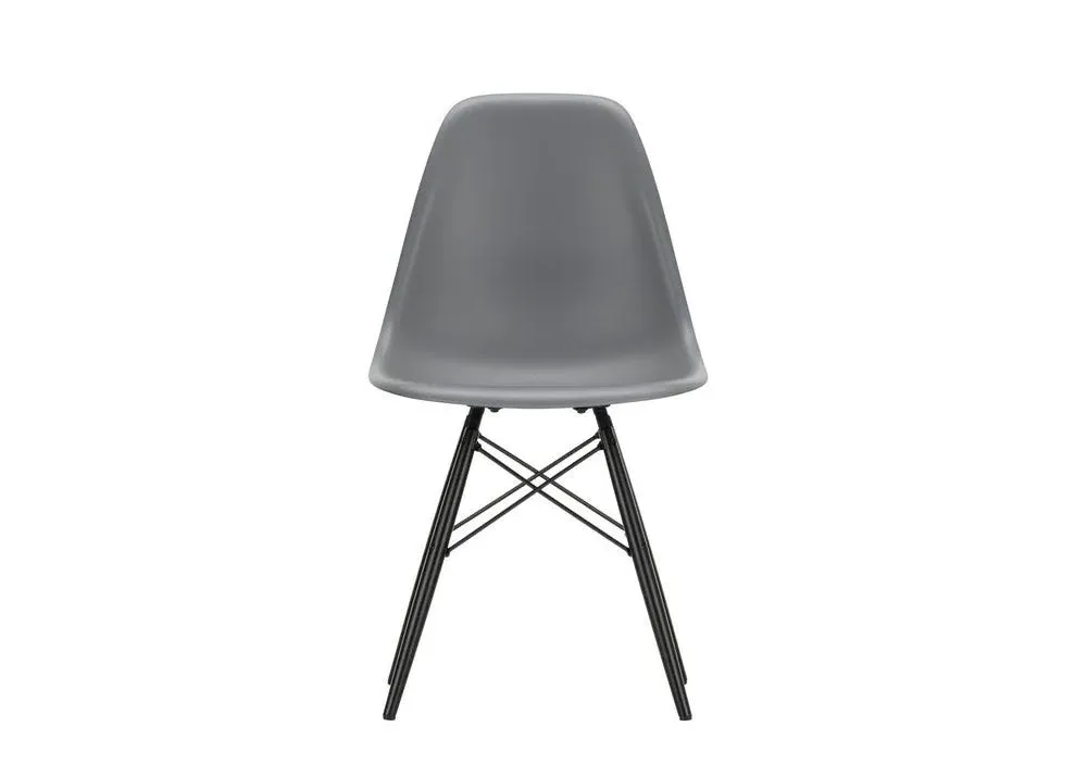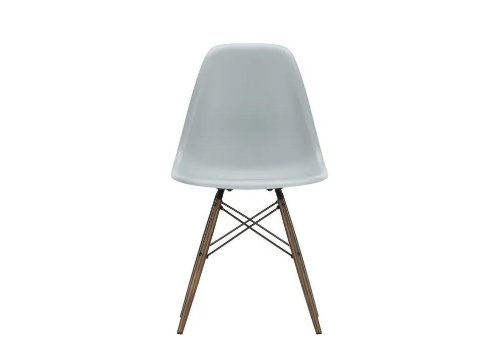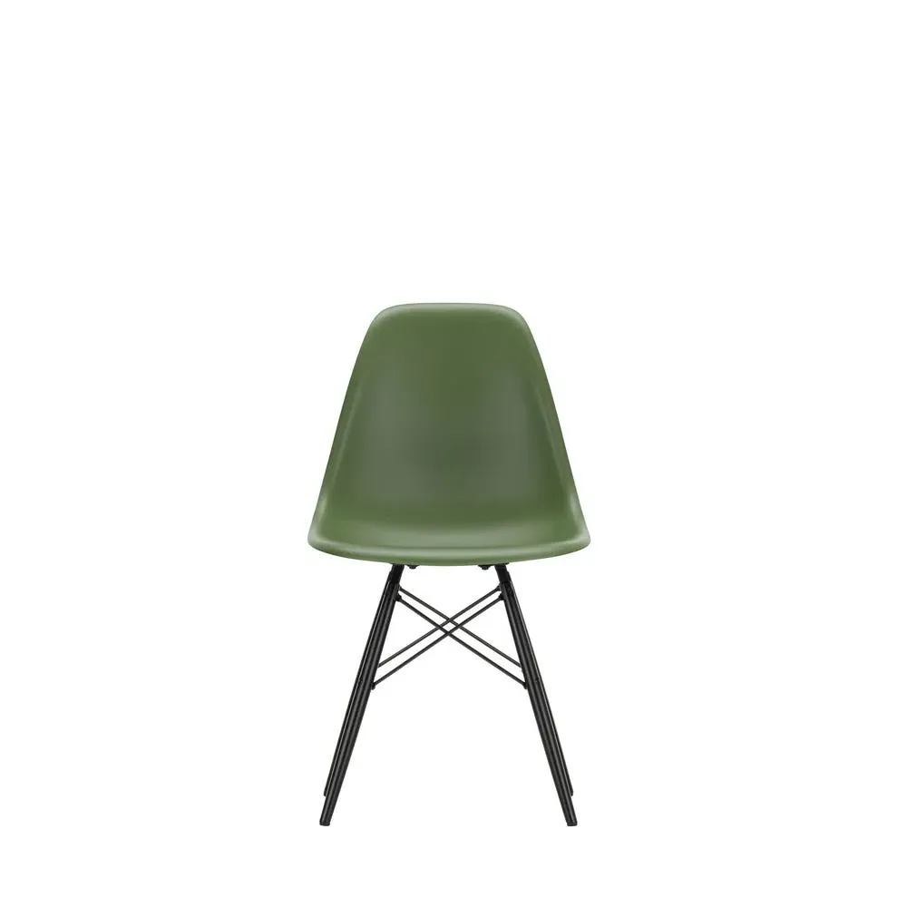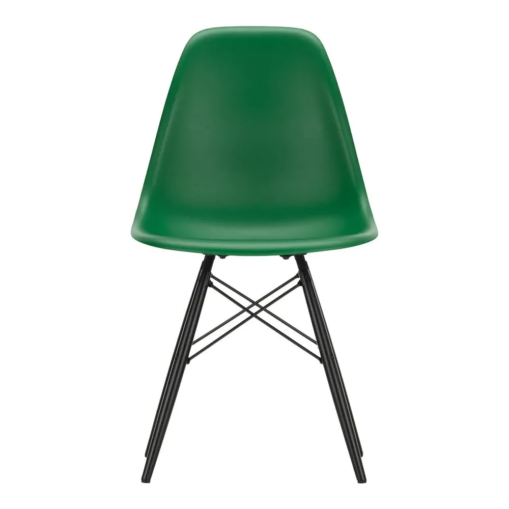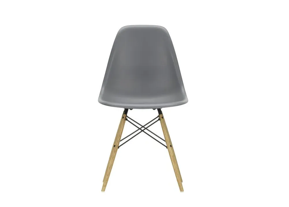The organic seat, or “shell” as it's often referred to, has a curvaceous, organic form that allows for a comfortable sit while still providing firm posture support. On the base, spindly maple legs, available in a range of dark or light finishes, form to create diagonal arches attached via durable steel supports.A wonderfully crafted, and fully licensed edition by Vitra, this reproduction adheres strictly to the Eames original design, the only change being the replacement of fibreglass shell for a more environmentally friendly, not to mention hard-wearing, polypropylene seat.