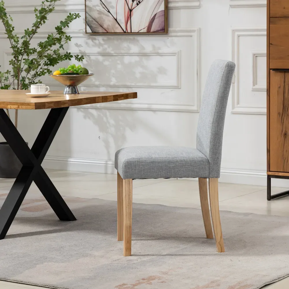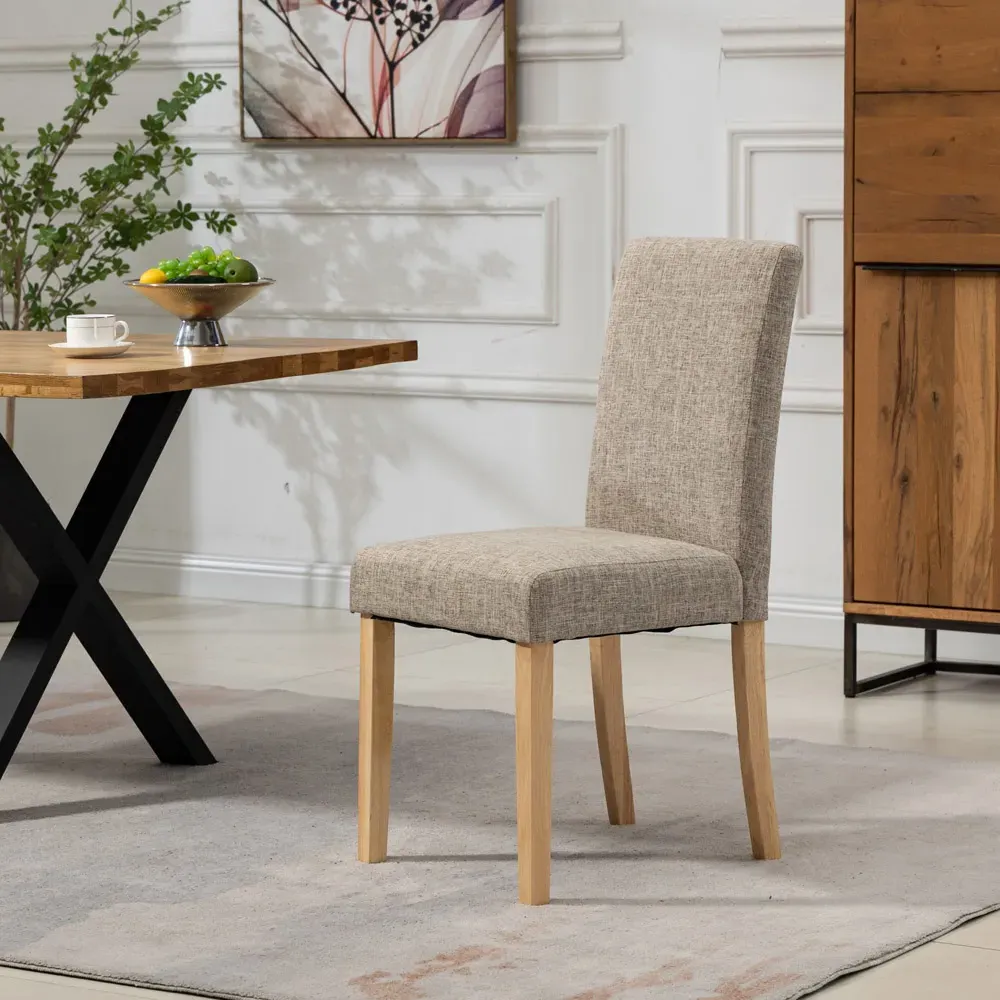 The Maiolo dining chairs deliver comfort with their solid wooden frame and velvet upholstery. The high-back design provides support, while the pine-coloured wooden legs ensure stability and add natural warmth. These chairs feature user-friendly assembly and suit various dining arrangements with their versatile design.
