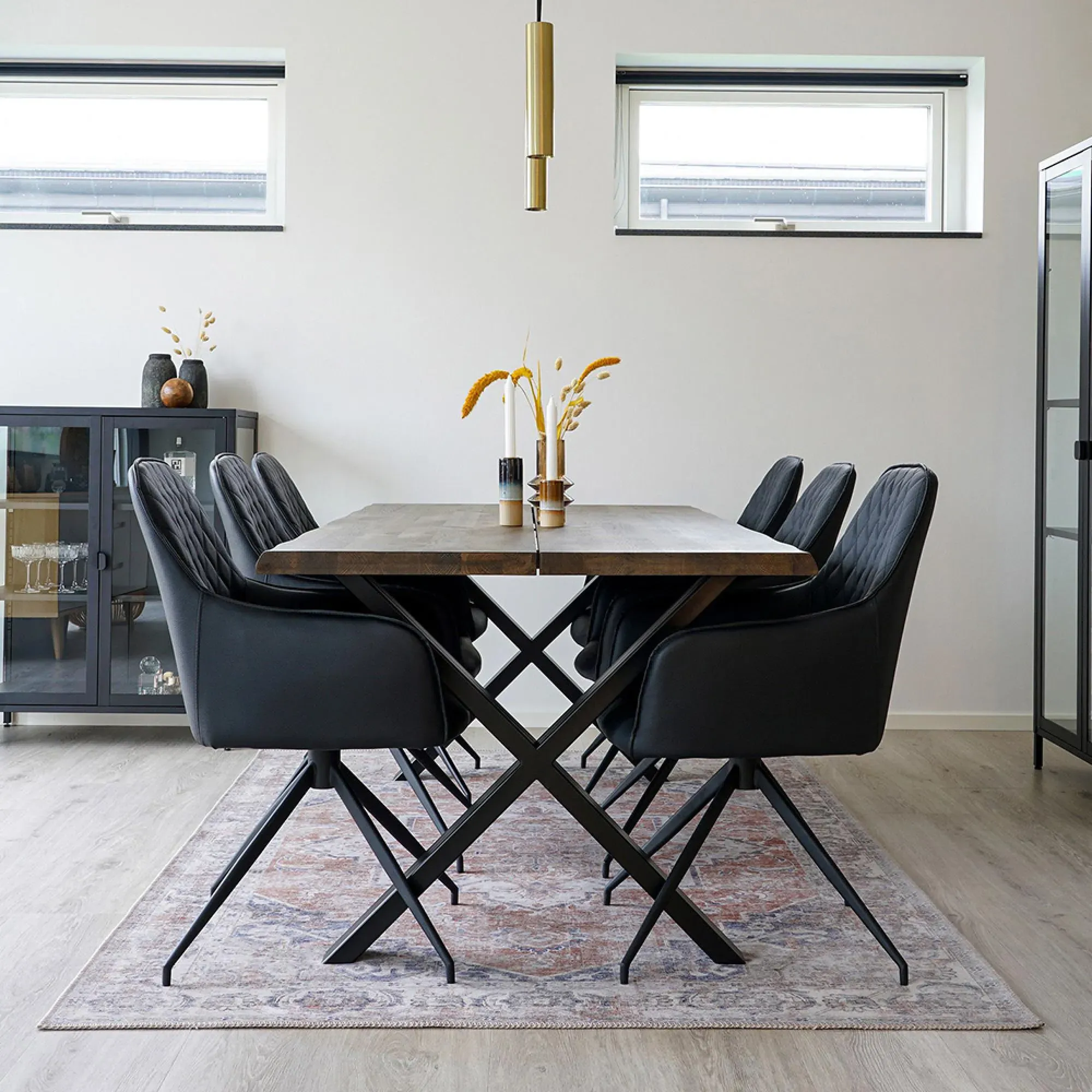The Harbo dining chair offers contemporary style with its beige boucle fabric upholstery, supported by sleek black legs. Its textured boucle weave provides visual interest and comfort, while the neutral beige tone suits various interior schemes. The durable construction ensures lasting support, and the distinctive fabric adds modern sophistication to dining spaces.