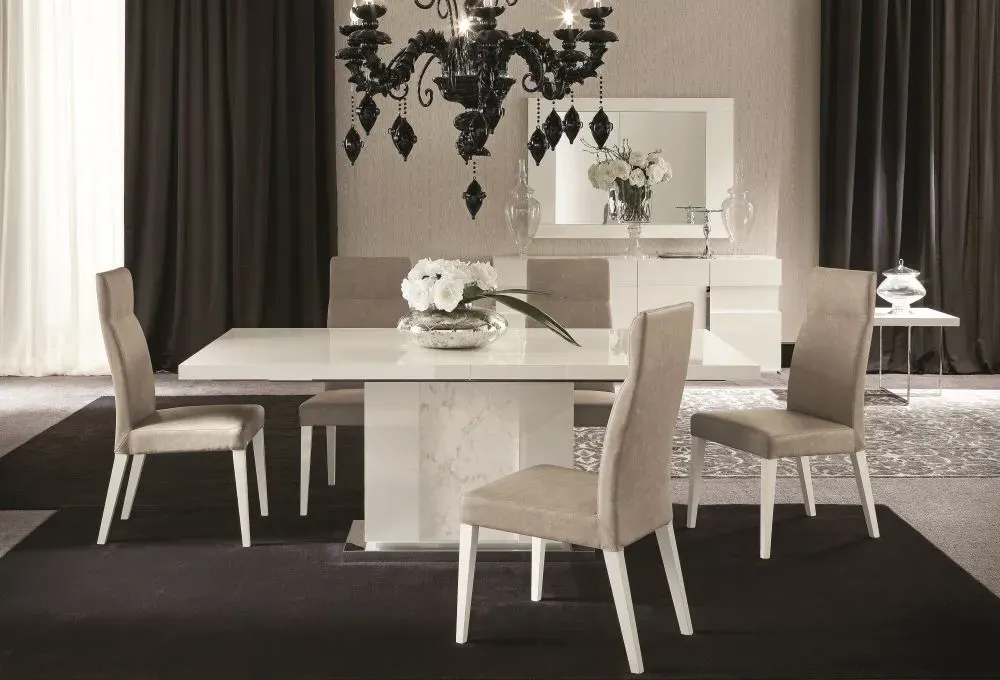 The Tivoli Dining Chair features Italian design with its grey fabric upholstery and refined construction. The comfortable fabric material provides a soft seating experience, while the neutral grey tone complements various dining room styles. Sold as a pair, these chairs offer both comfort and versatile styling.