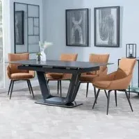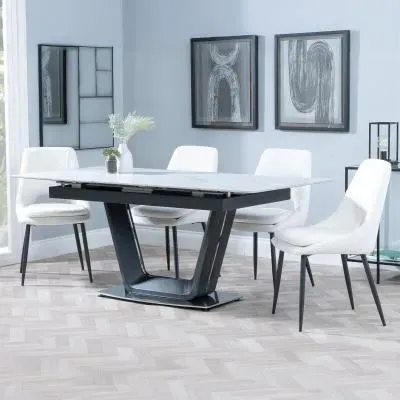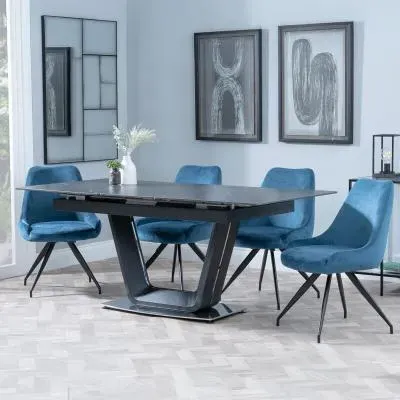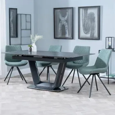 Alpha Extendable Dining Set with Corona Chairs - Black, Ceramic
