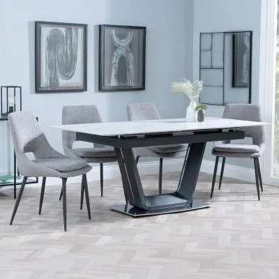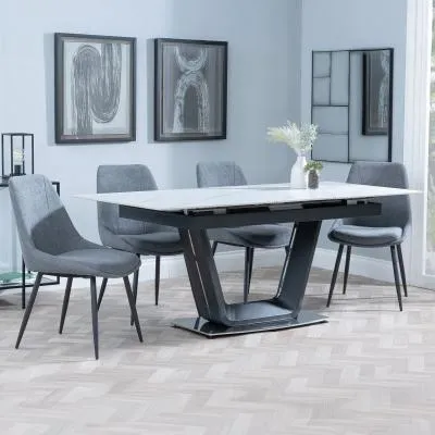 Alpha Black Ceramic Extending Dining Set - Corona Light Grey Fabric Dining Chair - DT-007-Black/DC-1939C-LIGHT GREY, available to buy online or in-store at Choice Furniture Superstore UK at stockist prices. Shop our Black Friday Furniture Sale for amazing deals with fast, free delivery. Get volume discounts and exclusive offers in Black Friday Dining Sets sale. Best furniture shop in Leicester,Leicestershire,East Midlands Selling. Deals. Black Friday Furniture Sale,Black Friday Dining Sets Sale Best furniture shop in Leicester,Leicestershire,East Midlands Selling. Deals. Black Friday Furniture Sale,Black Friday Dining Sets Sale