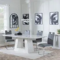 The Milan Dining Set features grey marble construction paired with Bianco grey faux leather chairs for cohesive styling. Its marble surface resists stains and scratches, while the matching grey chairs create a unified look. The 160cm table provides ample dining space, and the faux leather upholstery delivers comfort with easy care maintenance.