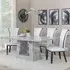 The Milan Dining Set combines a grey marble table with matching Cadiz black leather dining chairs. The marble surface provides durability and easy maintenance, while the leather upholstery offers comfort for extended dining. The set features a solid construction with a sleek finish that complements various interior styles. Each chair includes supportive padding and sturdy legs for long-lasting use.