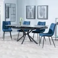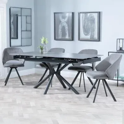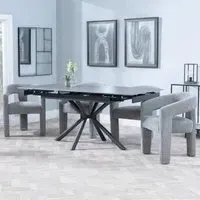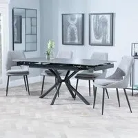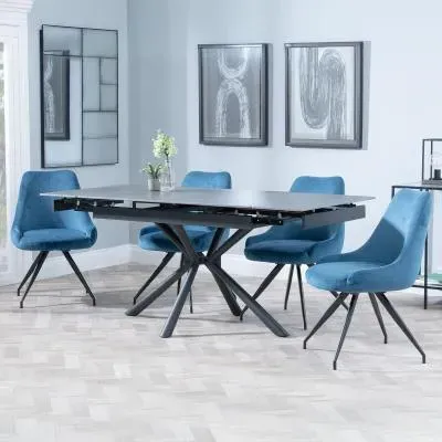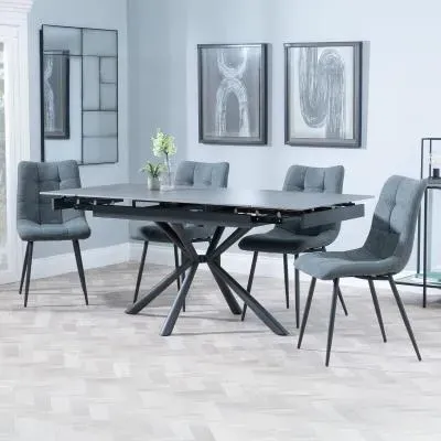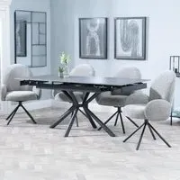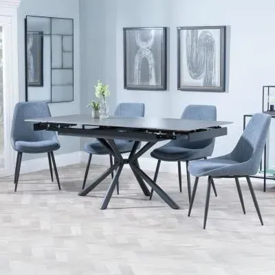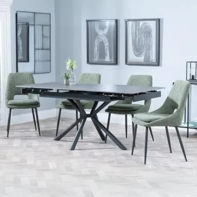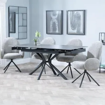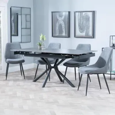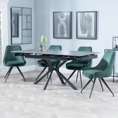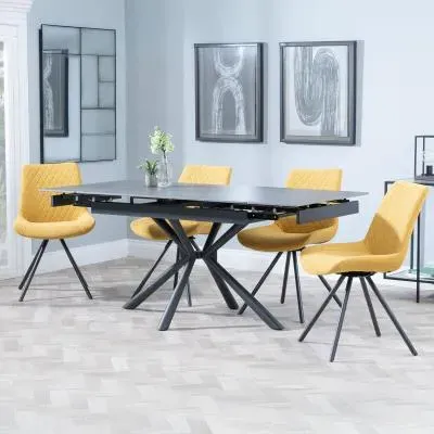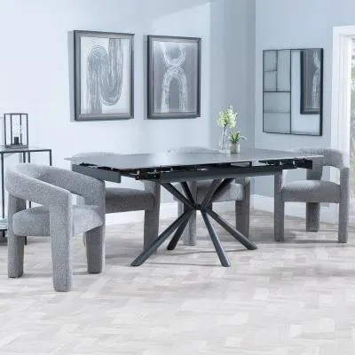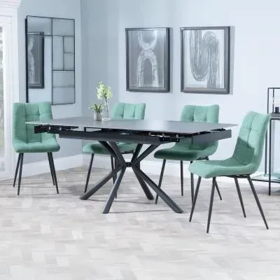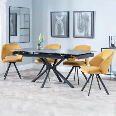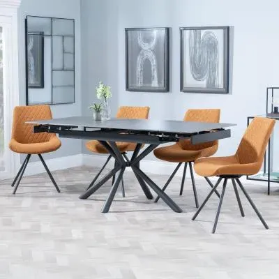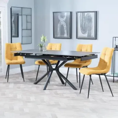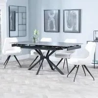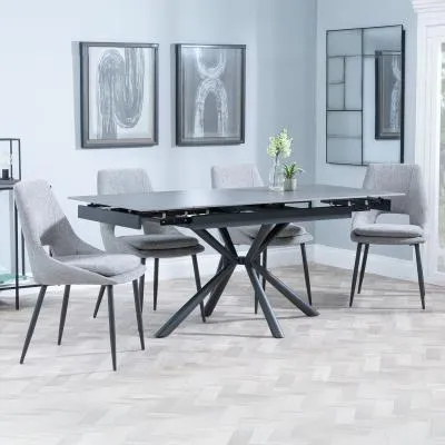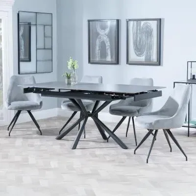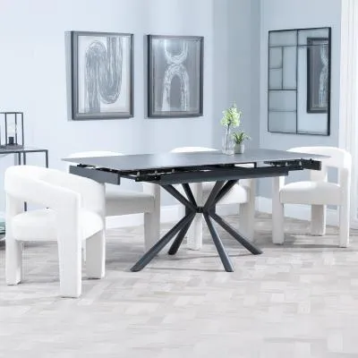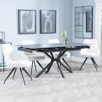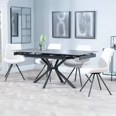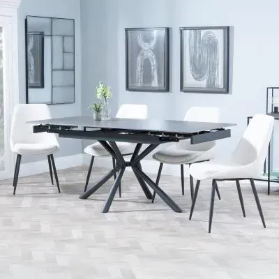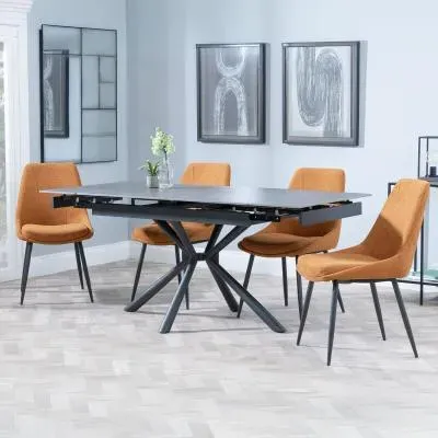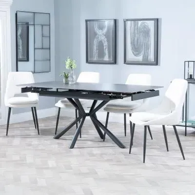 Ripon Extendable Dining Set with Corona Chair - Black, Ceramic