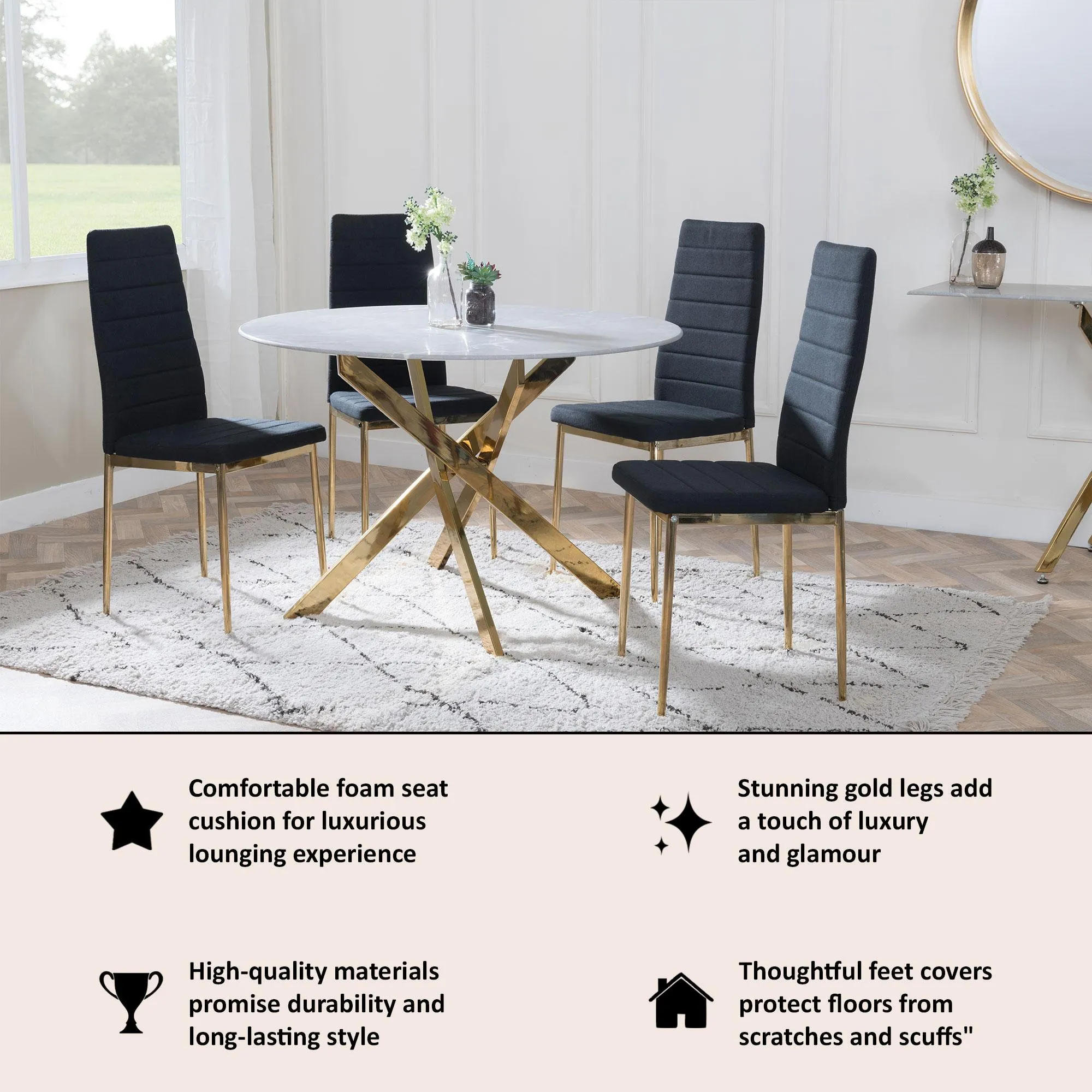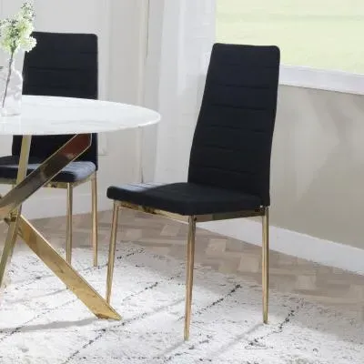 The Lido Dining Chair offers comfort with its soft black fabric upholstery, complemented by sturdy black legs that provide stability and a cohesive finish. The fabric seat creates an inviting surface for extended dining, while the black base adds durability and visual continuity. This chair suits both formal dining and casual meals with its balanced proportions and easy-to-maintain materials. W41 x D49 x H96 cm.