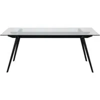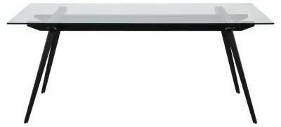 The Wilma Dining Table combines glass and metal construction for both elegance and durability. Its glass top adds visual lightness to the space, while the matt black metal legs provide sturdy support and stability. The rectangular design accommodates six people comfortably, and the smooth glass surface makes cleaning effortless. W140 x D80 x H75 cm.