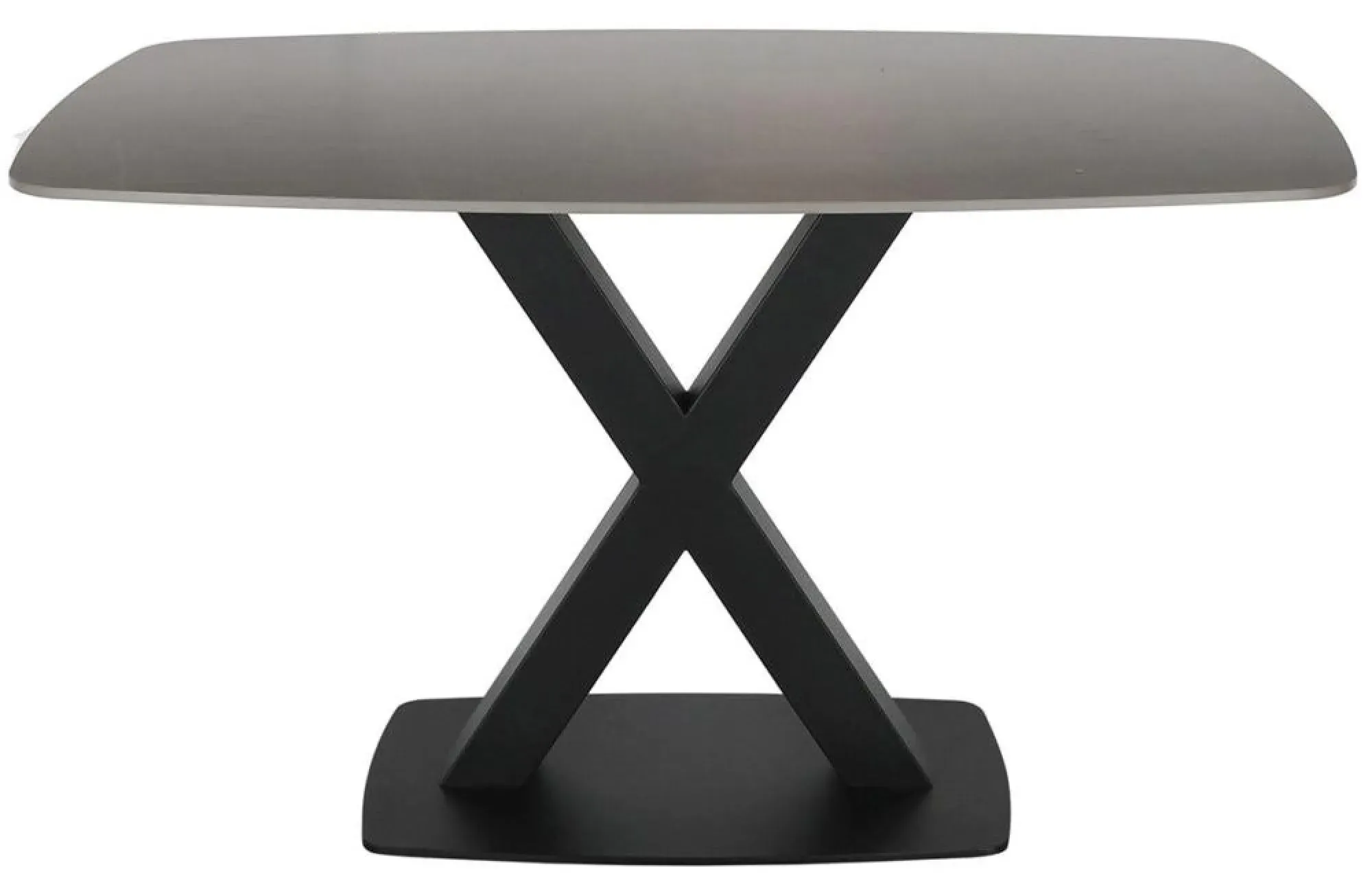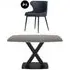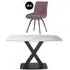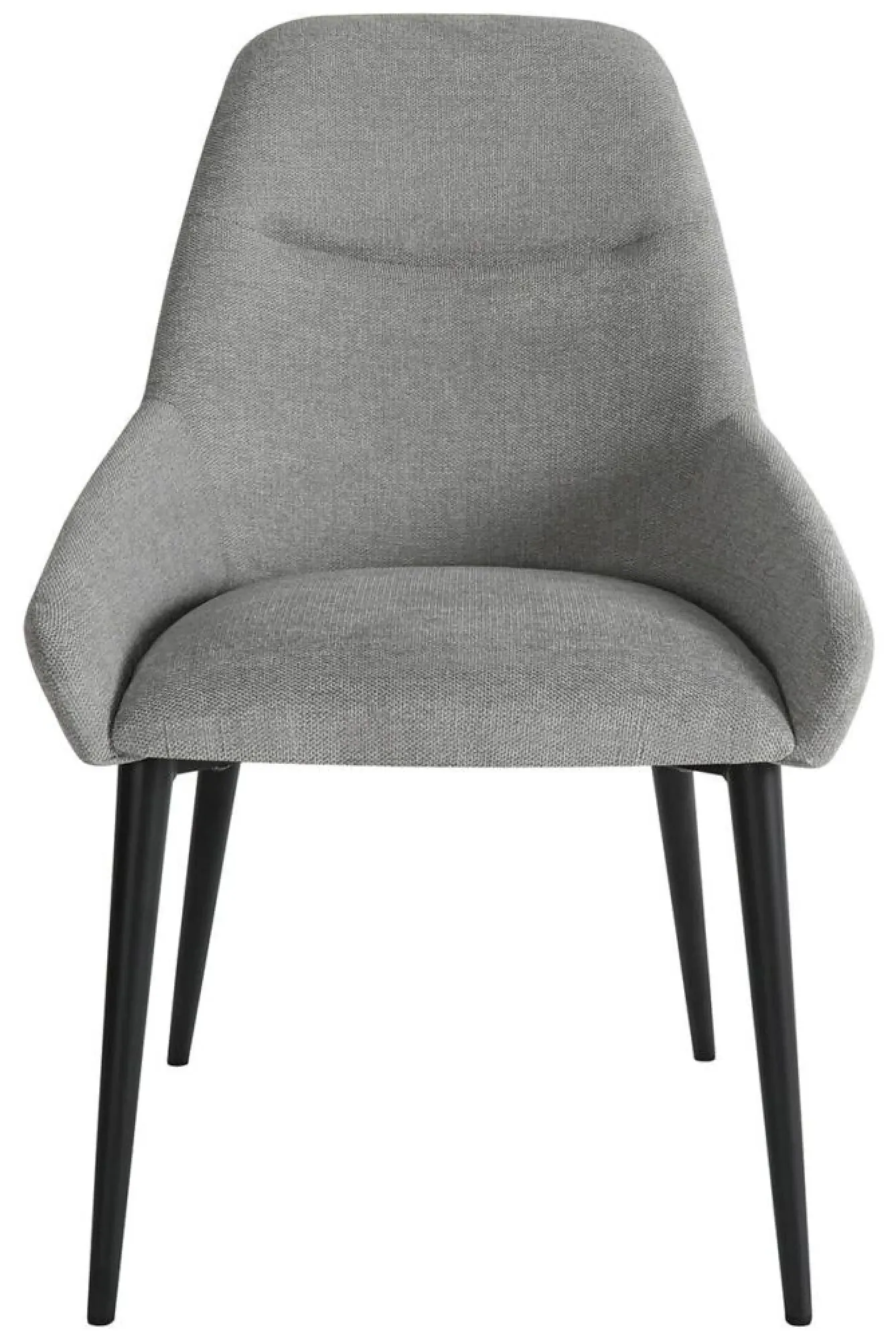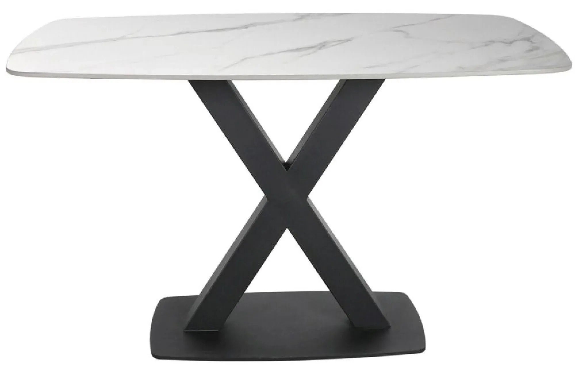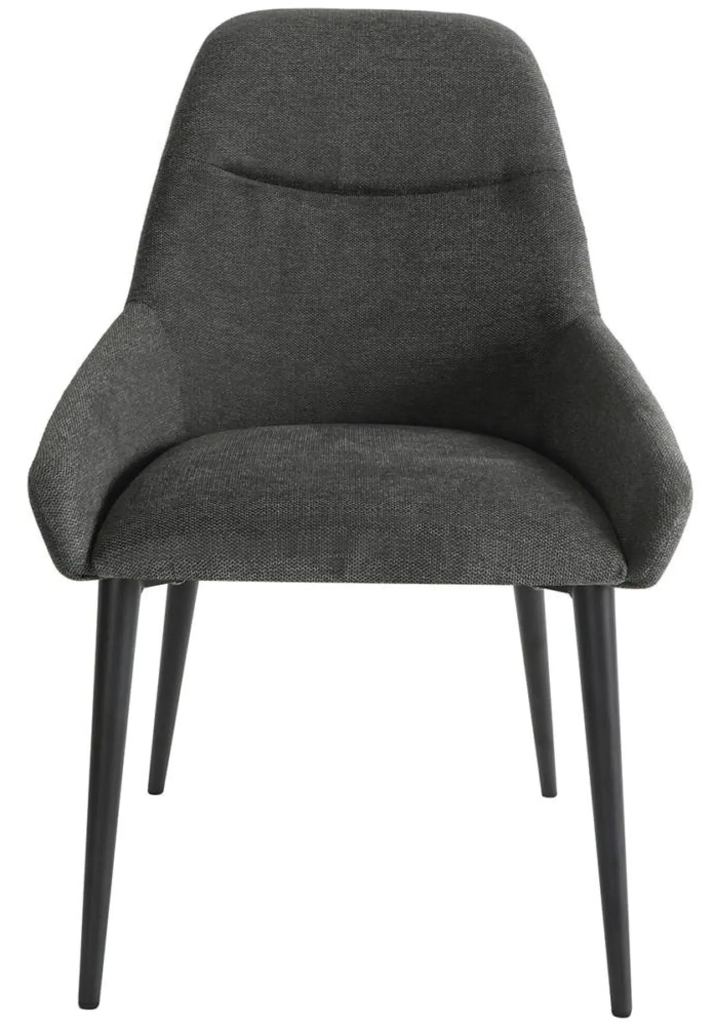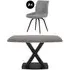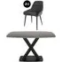 The Vernal dining set combines a white sintered stone table with four Langley chairs in yellow fabric upholstery. The sintered stone surface provides durability and easy maintenance, while the fabric upholstery offers comfort for extended seating. The coordinated design creates a cohesive dining arrangement with contrasting color elements.