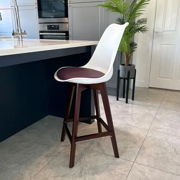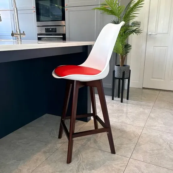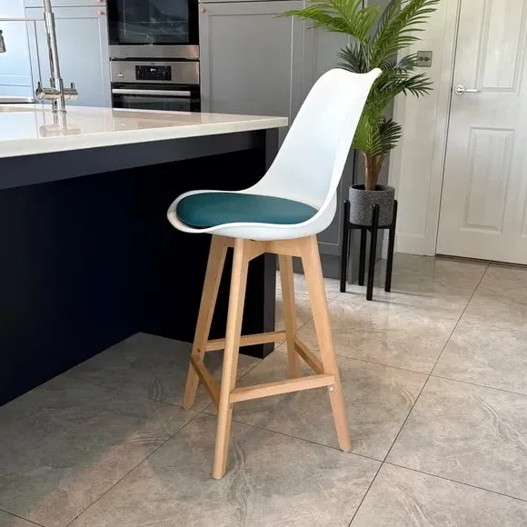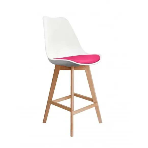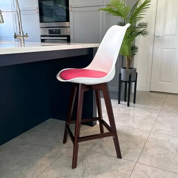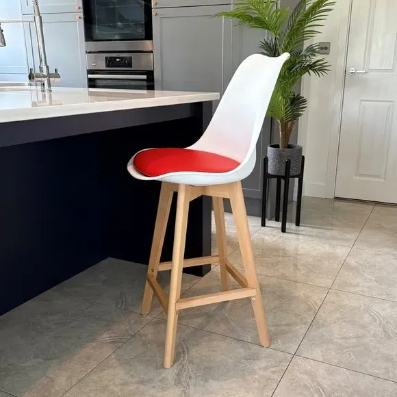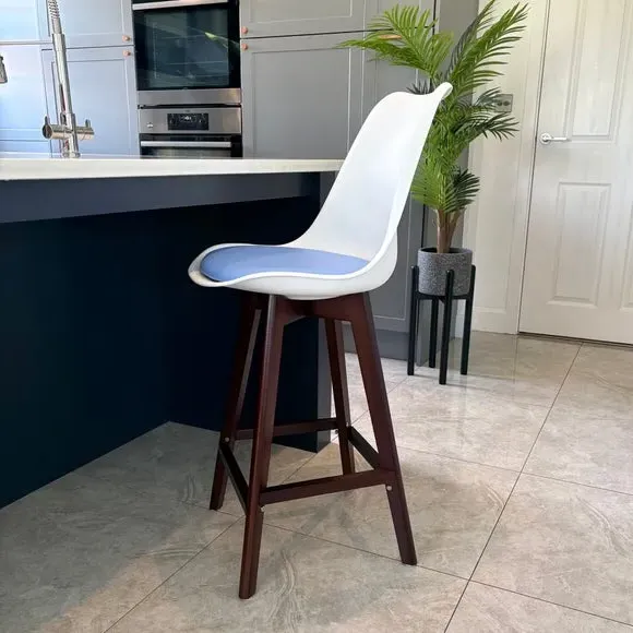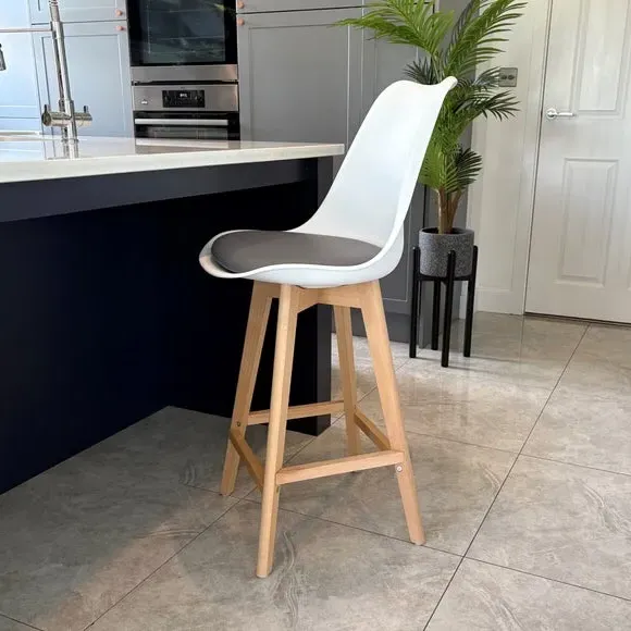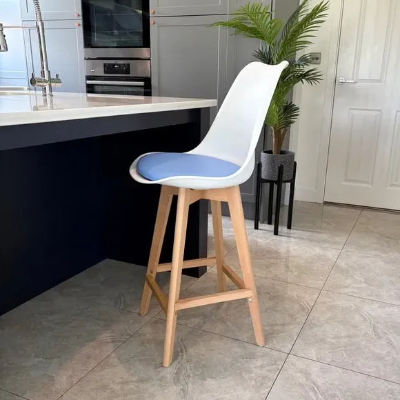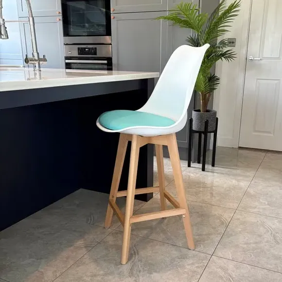 * Removable seat pad* Comfortable and durable* Easy to wipe clean with a damp cloth* Available in a variety of colours* Simple assembly with easy-to-follow instructions Part of a collection inspired by contemporary designs, this bar stool is perfect for long, leisurely meals or time spent reading at a kitchen counter. The shaped seat and back, combined with a soft seat pad, ensure added comfort, while the four squared, natural wood legs provide sturdy support. The seat pad is easy to wipe clean, making this bar stool a practical choice for any contemporary home.