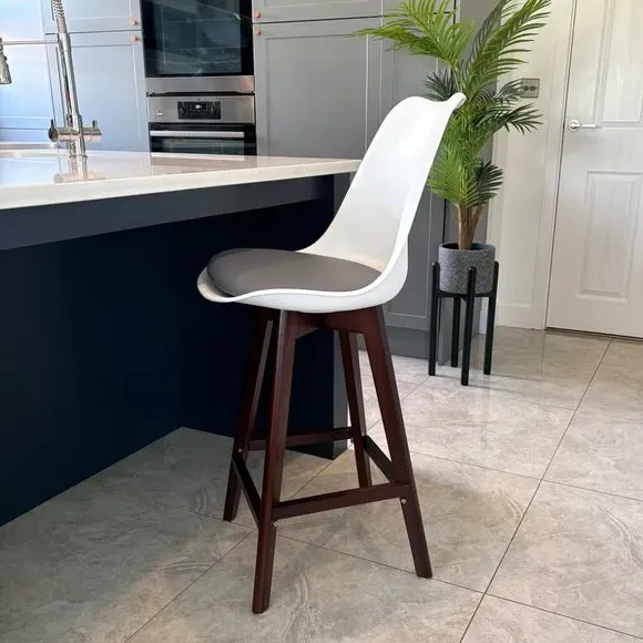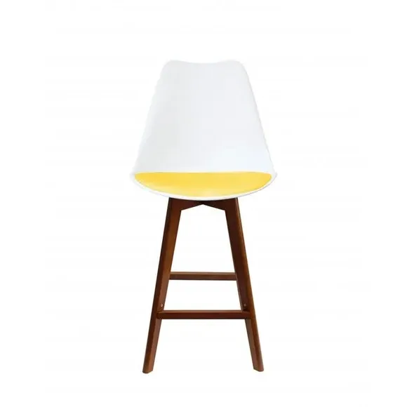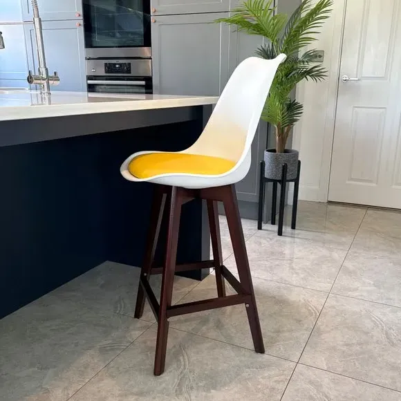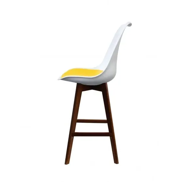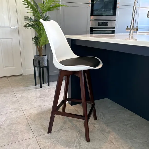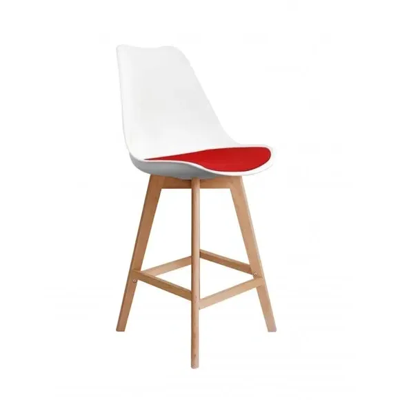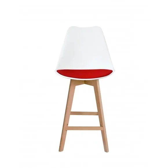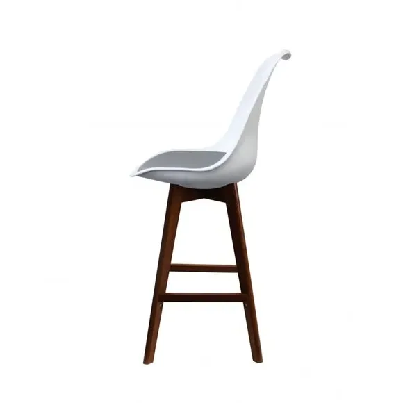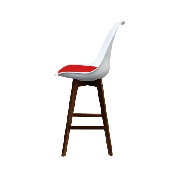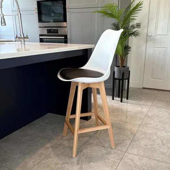 * Removable seat pad* Comfortable and durable* Easy to wipe clean with a damp cloth* Available in a variety of colours* Simple assembly with easy-to-follow instructions Part of a collection inspired by contemporary designs, this bar stool is perfect for long, leisurely meals or time spent reading at a kitchen counter. The shaped seat and back, combined with a soft seat pad, ensure added comfort, while the four squared, natural wood legs provide sturdy support. The seat pad is easy to wipe clean, making this bar stool a practical choice for any contemporary home.