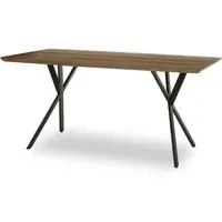 The Bakerloo Dining Table features an oak effect finish with 3D paper veneer construction. Its composite board top provides durability with a 25mm thickness, while the metal legs offer stable support with 30mm thickness. The rectangular design suits various dining spaces with its oak effect finish adding natural appeal. W120 x D70 x H76 cm.