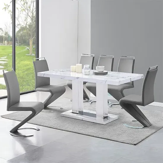 The Candice Dining Table offers luxury with its high gloss Milano marble effect finish, creating a sophisticated centerpiece for any space. Its MDF construction with stainless steel base provides excellent stability and support, while the glossy surface resists stains and cleans easily. The rectangular shape accommodates family meals and gatherings comfortably. W160 x D90 x H75 cm.