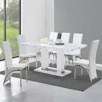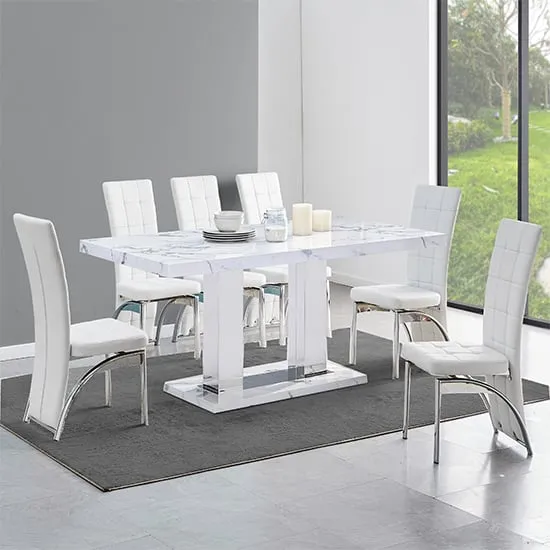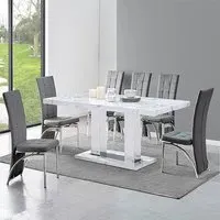 The Candice High Gloss Dining Table in Milano Marble Effect is a beautiful and elegant piece of furniture from Furniture in Fashion. The table features a glossy white finish with a realistic marble effect, which adds a touch of luxury to any dining room. The table is made from high-quality materials, which ensures its durability and longevity. The Candice High Gloss Dining Table is available in two sizes, making it suitable for a range of dining room sizes. The table also features a sturdy and robust base, which provides excellent stability and support. Its easy-to-clean surface makes it perfect for family meals or dinner parties with friends. The Candice High Gloss Dining Table is a great investment for any home, as it not only adds a touch of style to the dining room but also provides a functional and practical space for dining and entertaining. With its sleek and modern design, the Candice High Gloss Dining Table will be a statement piece in any home. FEATURES : Material : MDF, Stainless Steel Finish : High Gloss Milano Marble Effect, Chrome Candice High Gloss Dining Table In Milano Marble Effect High Gloss finish with Milano Marble Effect Rectangular Shape Dining Table gives a luxury of class in your dining room with it's high gloss finish Available at an affordable price Images shown are for illustration purpose only DIMENSIONS : Height : 75cm Width : 160cm Depth : 90cm