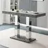 Caprice Rectangular Wooden Bar Table in Grey Oak Effect, a stunning addition to your living space that seamlessly blends style and functionality. The table features a sleek rectangular top and base, both elegantly finished in a modern grey oak effect, exuding an air of sophistication. Supported by solid shiny chrome stainless steel double support, this table not only looks stylish but also ensures durability and stability. Whether you're enjoying a leisurely evening or hosting a gathering, the Caprice Bar Table sets the perfect stage for stylish and modern entertainment. Elevate your home with this contemporary piece that exudes charm and complements any setting. Contemporary Luxury: The Caprice Wooden Bar Table in Grey Oak Effect is a symbol of contemporary luxury. Its sleek design and rectangular top exude sophistication, aligning perfectly with the trend of contemporary interior decor that emphasizes clean lines and minimalism. Spacious Dining: Enjoy spacious dining with family and friends as this table comfortably accommodates multiple guests. Its top adds a touch of refinement to your bar or dining area while providing ample space for memorable gatherings, in line with the trend of open and inviting dining spaces. Elegance: The grey oak effect finish of the table's base not only enhances its visual appeal but also makes it easy to clean and maintain, ensuring its lasting beauty for years to come. This easy-care feature is in tune with the practical yet stylish trend. Versatile Contemporary Charm: The Caprice Bar Table's design effortlessly complements a variety of contemporary interior decor styles. Whether your space is adorned with minimalist chic or modern industrial elements, this table is the perfect addition. Exclusive Opportunity: Don't miss the exclusive opportunity to bring the Caprice Wooden Bar Table into your home at a special price. Elevate your bar area with contemporary luxury today, and stay aligned with the contemporary design trend. Features