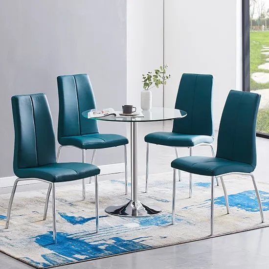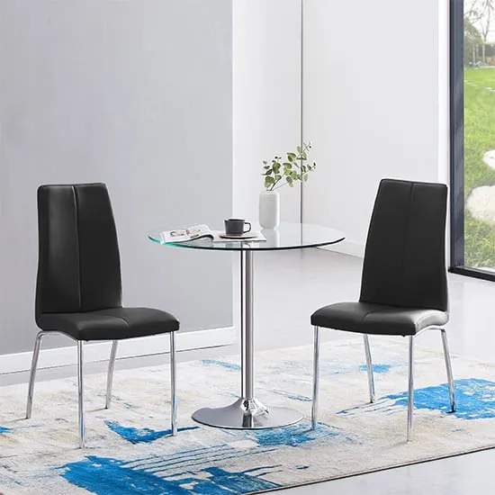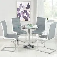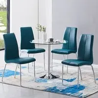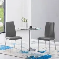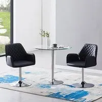 The Dante dining table offers visual spaciousness with its clear tempered glass top, supported by a sleek chrome base. The circular shape allows for easy conversation and comfortable seating for up to four people. The toughened safety glass provides a durable hard-wearing surface, while the chrome base adds structural support and contemporary appeal. The transparent top creates a clean and airy look that complements various decor styles. W80 x D80 x H74 cm.