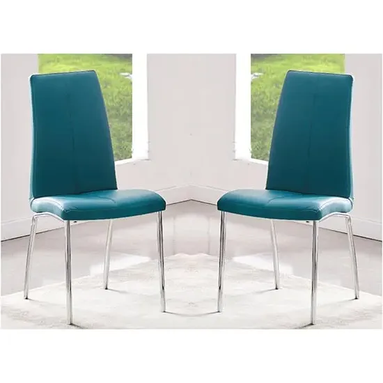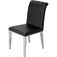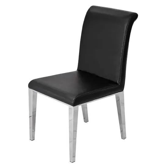 The Daryl Dining Chair provides comfort with its padded PU synthetic leather seat and back filled with polyurethane foam. Its chrome-finished stainless steel legs offer stability and durability, while the plywood structure ensures lasting support. The feet are protected by caps for floor safety, and the chair's construction combines synthetic leather upholstery with reliable metal framework. W43 x D58 x H103 cm.