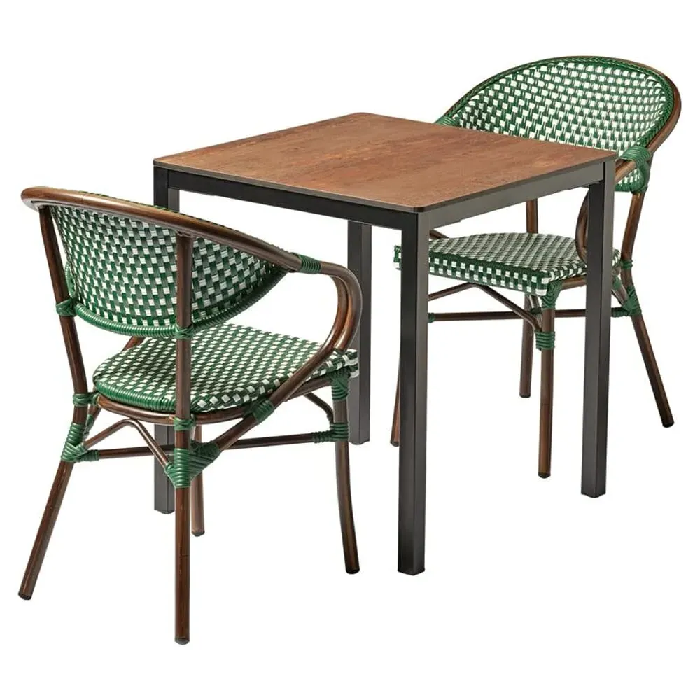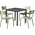 The Extro dining table provides exceptional durability with its black marble textured laminate surface that resists abrasions, heat, and stains. Its black powder-coated steel base offers stability through adjustable feet, while the aluminium construction ensures rust-free longevity. The table features UV-resistant properties and weather resistance, making it suitable for both indoor and outdoor environments. Self-assembly is required for this low-maintenance table.
