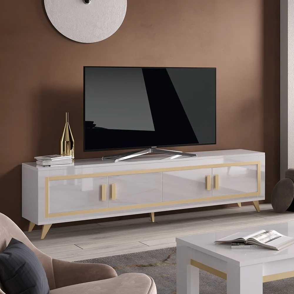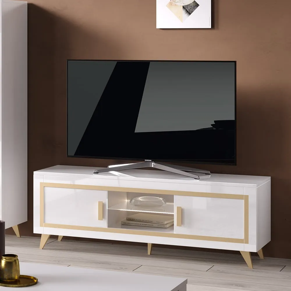 Discover elegance with the Geneva High Gloss Bedside Cabinet in White and Gold from Furniture in Fashion. This stunning piece combines modern design with luxurious finishes, making it a perfect addition to any bedroom. Its sleek high gloss surface enhances the overall aesthetic, while the gold accents add a touch of sophistication. With ample storage space, the cabinet keeps your essentials organized and within reach. Crafted from durable materials, it ensures longevity and stability. The contemporary design seamlessly complements various decor styles, elevating your space. Easy to assemble, the Geneva Bedside Cabinet is as practical as it is stylish. Transform your bedroom into a chic retreat with this exquisite furniture piece from Furniture in Fashion. FEATURES : Material : MDF (Medium Density Fibreboard) Finish : High Gloss White And Gold The high gloss white finish paired with gold accents provides a contemporary look that enhances any decor Includes multiple drawers, offering ample space for essentials and personal items while keeping your bedside organized Made from high-quality materials, ensuring longevity and stability for everyday use The glossy surface is not only stylish but also easy to wipe down and maintain Fits well with various interior styles, from modern to glam, making it a versatile addition to your home Perfect for holding lamps, books, or decorative items, adding both functionality and style Equipped with soft-close mechanisms to prevent slamming and ensure quiet use Available at an affordable price Images shown are for illustration purpose only DIMENSIONS : Height : 48cm Width : 55cm Depth : 37cm