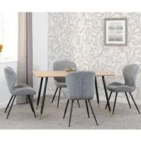 The Hanover dining set combines natural oak construction with comfortable fabric seating. The solid oak table features a natural finish that adds warmth to any space, while the four Alsip chairs provide padded seats and supportive high backs. Its robust construction ensures long-lasting durability and stability, with ergonomic chair design offering superior comfort during extended meals.