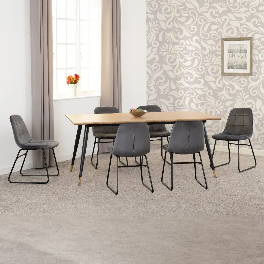 Transform your dining experience with the Furniture in Fashion Hanover Oak Wooden Dining Table With 4 Alsip Brown Chairs. This stunning dining set blends rustic charm with modern elegance, offering a perfect balance of style and comfort. The solid oak wooden table, with its natural finish, serves as a beautiful centrepiece in your dining room, while the four Alsip brown chairs add a touch of sophistication with their sleek design and comfortable seating. The Furniture in Fashion Hanover Dining Set is designed to enhance both the look and functionality of your dining space. The sturdy oak table provides ample space for meals, gatherings, and special occasions, while the Alsip chairs are ergonomically designed to offer superior comfort during long dinners. Together, this set creates a warm and inviting atmosphere, making every meal an enjoyable experience. Elevate your dining room with the Furniture in Fashion Hanover Oak Wooden Dining Table With 4 Alsip Brown Chairs, where comfort meets style. This set is not just a place to dine; its a centrepiece that enhances the ambiance of your home. FEATURES : Material : Wooden ,Fabric Finish : Brown ,Oak The dining table features a robust oak construction with a natural finish, adding warmth and elegance to your dining area Comfortable Seating : The set includes four Alsip brown chairs, designed with padded seats and high backs for maximum comfort Elegant Design : The combination of the oak table and brown chairs brings a contemporary yet timeless look to your home Both the table and chairs are crafted from high-quality materials, ensuring long-lasting durability and stability This dining set complements a variety of interior designs, from modern to traditional, enhancing the overall decor of your space Easy to Clean : The smooth surfaces of the table and the easy-to-maintain fabric of the chairs make cleaning a breeze Simple Assembly : The dining set comes with easy-to-follow instructions, ensuring a quick