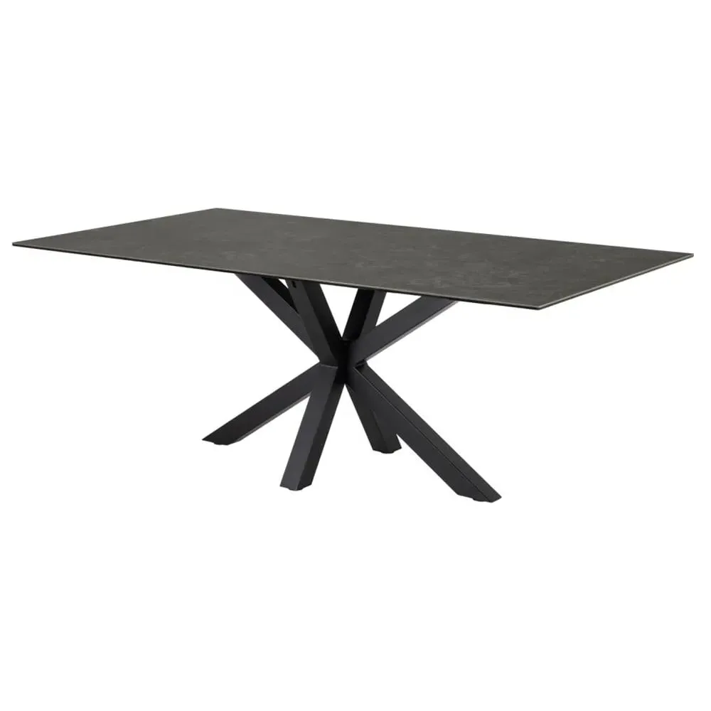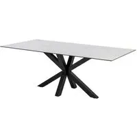 Enhance your dining area with the sophisticated charm of the Hyeres Small Ceramic Dining Table in Black Fairbanks from Furniture in Fashion. This Small-sized dining table features a sleek ceramic top finished in a rich Black Fairbanks shade, delivering the luxurious appeal of natural stone with the durability needed for everyday use. Its perfect size offers a cozy yet stylish setting ideal for small family meals or intimate gatherings. Supported by a sturdy black metal frame, the Hyeres dining table combines modern industrial flair with practical design. Its clean lines and durable materials make it an excellent centrepiece for contemporary homes, effortlessly blending elegance and functionality. Bring style and function into harmony with the Hyeres Small Ceramic Dining Table in Black Fairbanks from Furniture in Fashion the ideal dining solution for modern living. FEATURES : Material : Ceramic Finish : Black Fairbanks The black dining table offers balanced aesthetics as well as generous space for up to 4 people Designed with a heat and scratch-resistant ceramic table top and a sculptural metal cross base in black colour, this table has a modern expression and is easy to maintain as well Such characteristics make the design an ideal addition to any home Powerful and timeless design Ceramic for low maintenance Heat and scratch-resistant table top Offers a sculptural base with elegant look Easy to wipe clean Comfortably seats up to 4 people Ceramic Table top : Finished in Black Fairbanks for a natural stone look with long-lasting durability Small Size : Perfectly sized to comfortably seat 2 to 4 people Strong Black Metal Frame : Provides stable support and a sleek, modern aesthetic Heat, Scratch and Stain Resistant : Ceramic surface is built to withstand daily wear Easy to Maintain : Smooth surface allows for effortless cleaning and care versatile Design : Complements a variety of interior styles, from modern to industrial Availabl