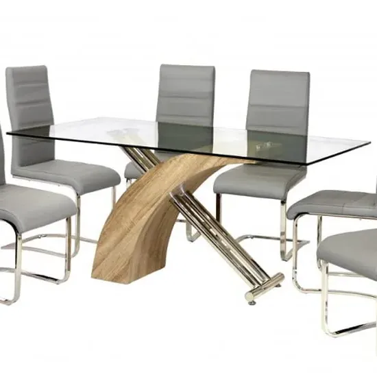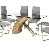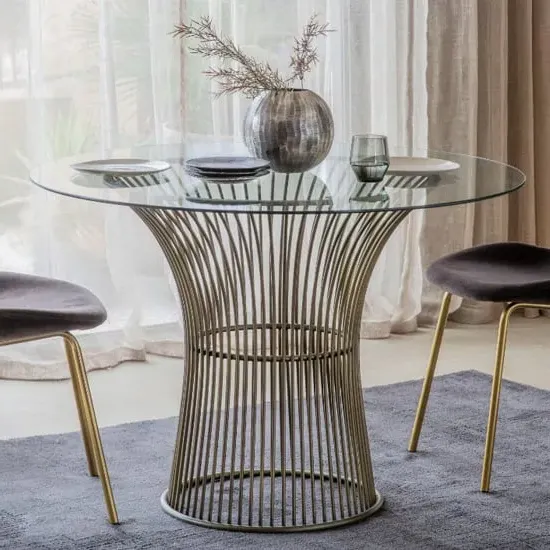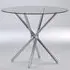 The Tania Glass Dining Table features a round tempered glass top supported by chrome metal legs, creating a sophisticated dining centerpiece. Its clear surface allows the chrome legs to remain visible, while the toughened safety glass provides reliable durability. The metal legs include floor protection pads, and the compact design suits intimate dining spaces. W80 x D80 x H75 cm