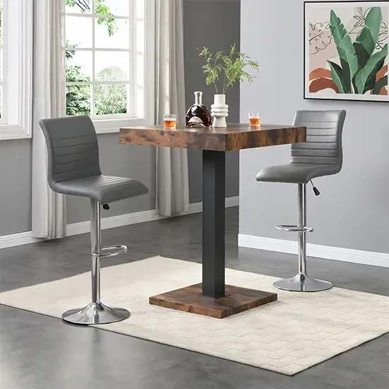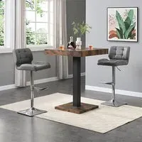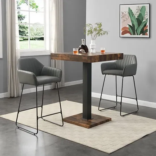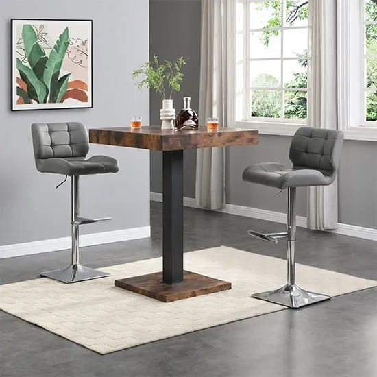 Topaz Square Wooden Bar Table In Concrete Effect With Stainless Steel Support, would create a pleasant atmosphere in your home or bar. Finished in Concrete Effect with Stainless Steel support. This contemporary bar table is ideal for your Dining, Living and Bar. FEATURES : Material : MDF, Stainless Steel Finish : Concrete Effect Topaz Square Wooden Bar Table In Concrete Effect With Stainless Steel Support Top and Base Finish in Concrete Effect Solid Shiny Stainless Steel Support provide Strength to the Bar Table Stylish And Modern Piece of Furniture Thick Square Top Fabulous Stainless Steel Legs Design Beautifully Designed Stylish Bar Table will be an Excellent Addition to your Home or Bar Available at an Affordable Price Images shown are for illustration purpose only DIMENSIONS : Height : 110cm Width : 80cm Depth : 80cm
